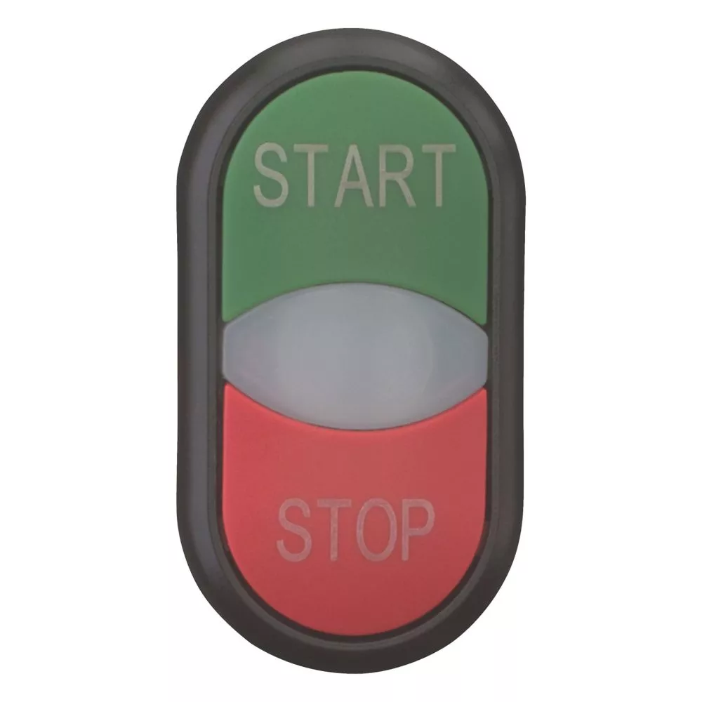 Przycisk podwójny, Zacisk śrubowy: RMQ-Titan, Urządzenie pojedyncze, Projekt: Elementy uruchamiające i lampki sygnalizacyjne niezlicowane, z samopowrotem, Opis: Biała soczewka, wkładka przycisku: zielony, czerwony, Wkładka przycisku podpisana, Stopień ochrony: IP66, Pierścień czołowy: czarny, Podłączanie do SmartWire-DT: tak, z przyłączami SWD-RMQ, Wymiary przedniej części: 29,7 x 54,7, Normy: IEC/EN 60947, VDE 0660