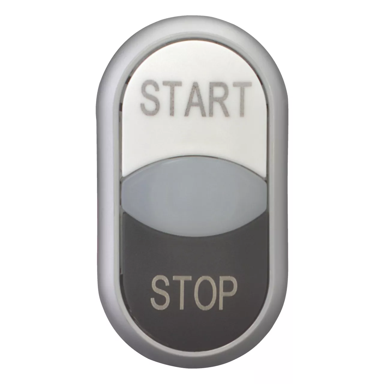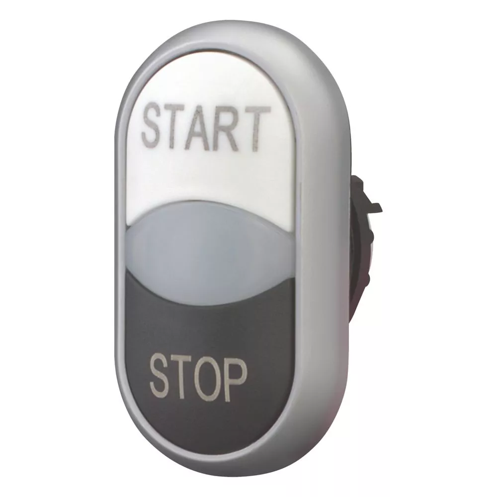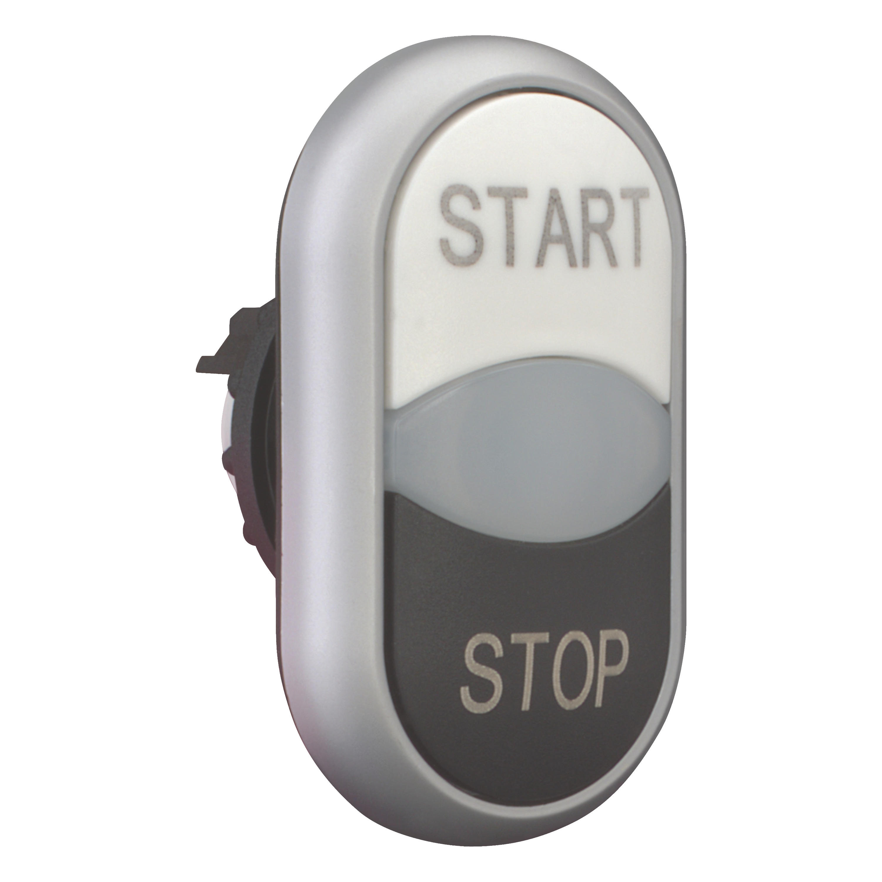 Przycisk podwójny, Zacisk śrubowy: RMQ-Titan, Urządzenie pojedyncze, Projekt: Elementy uruchamiające i lampki sygnalizacyjne niezlicowane, z samopowrotem, Opis: Biała soczewka, wkładka przycisku: biały, czarny, Wkładka przycisku podpisana, Stopień ochrony: IP66, Pierścień czołowy: tytan, Podłączanie do SmartWire-DT: tak, z przyłączami SWD-RMQ, Wymiary przedniej części: 29,7 x 54,7, Normy: IEC/EN 60947, VDE 0660