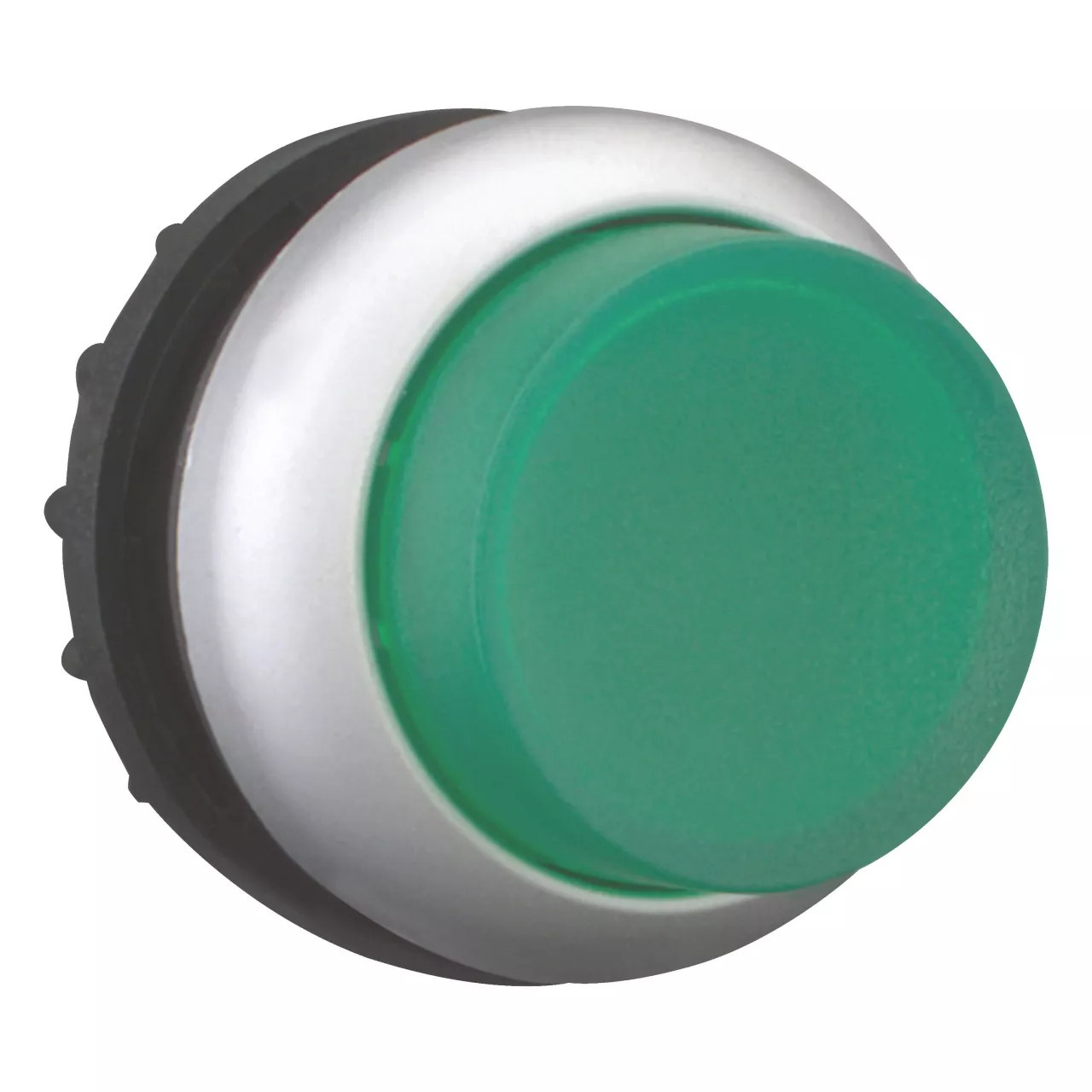 Przycisk podświetlony uruchamiający, Zacisk śrubowy: RMQ-Titan, Urządzenie pojedyncze, Projekt: Wystające, bez samopowrotu, wkładka przycisku: zielony, Wkładka przycisku Pusta, Stopień ochrony: IP66, IP67, IP69K, Pierścień czołowy: tytan, Podłączanie do SmartWire-DT: tak, z przyłączami SWD-RMQ, Wymiary przedniej części: 29,7, Instrukcje: Funkcję zatrzymania / powracania przycisku można zmienić na urządzeniu, Normy: IEC/EN 60947, VDE 0660