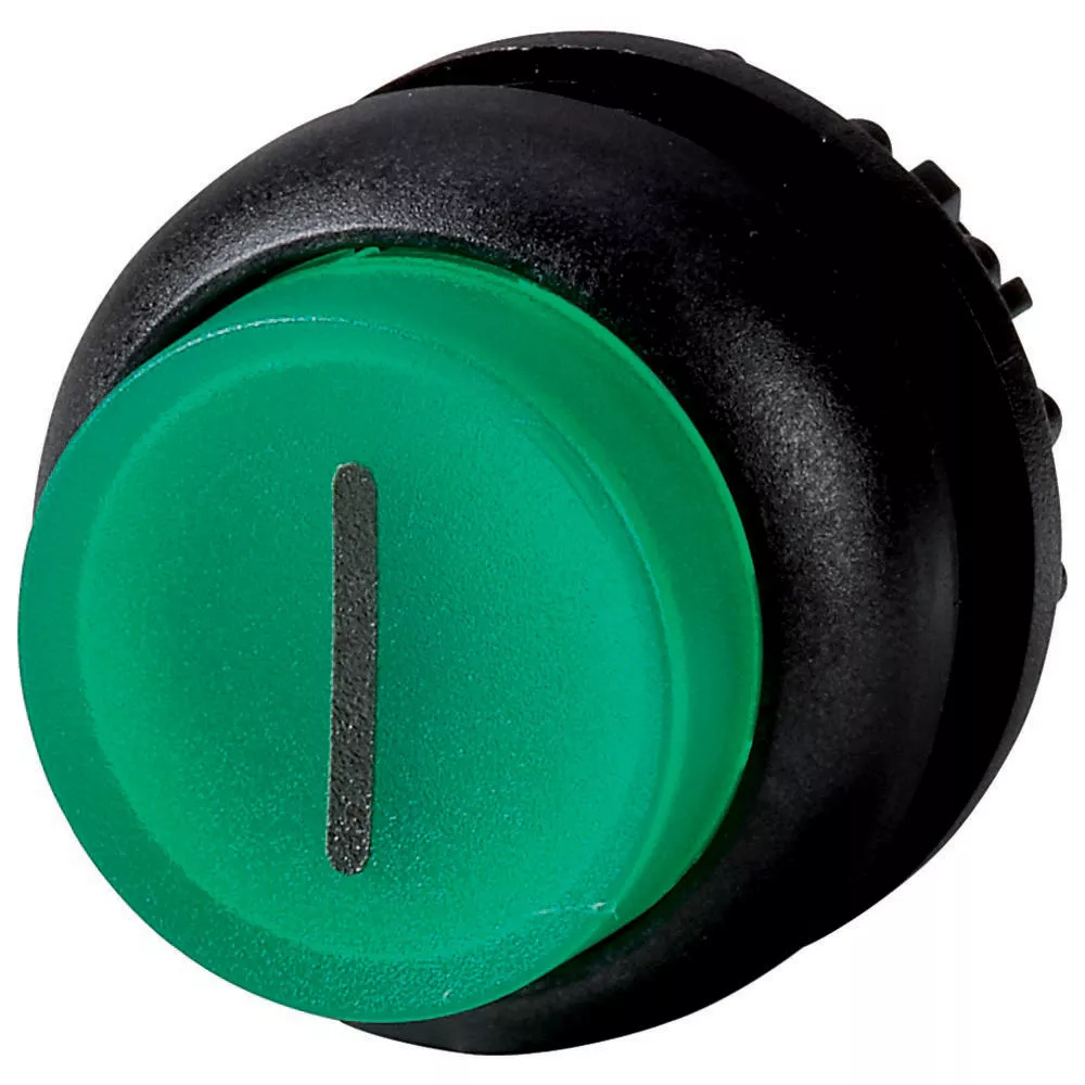 Przycisk podświetlony uruchamiający, Zacisk śrubowy: RMQ-Titan, Urządzenie pojedyncze, Projekt: Wystające, bez samopowrotu, wkładka przycisku: zielony, Wkładka przycisku podpisana, Stopień ochrony: IP66, IP67, IP69K, Pierścień czołowy: czarny, Podłączanie do SmartWire-DT: tak, z przyłączami SWD-RMQ, Wymiary przedniej części: 29,7, Instrukcje: Funkcję zatrzymania / powracania przycisku można zmienić na urządzeniu, Normy: IEC/EN 60947, VDE 0660