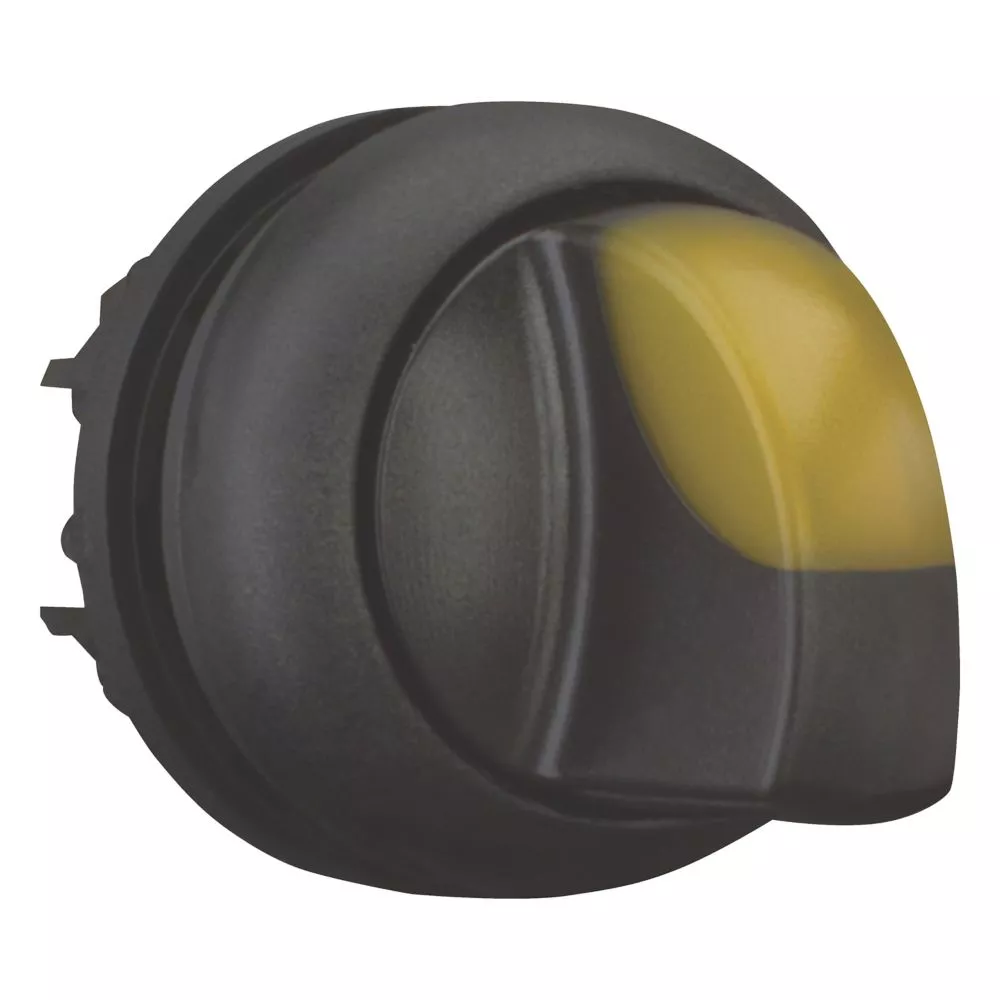 Przełącznik podświetlany, Zacisk śrubowy: RMQ-Titan, Urządzenie pojedyncze, Projekt: Z pokrętłem, z samopowrotem, 3 położenia, Kolor uchwytu na kciuk: żółty, Stopień ochrony: IP66, Pierścień czołowy: czarny, Podłączanie do SmartWire-DT: tak, z przyłączami SWD-RMQ, Wymiary przedniej części: 29,7, Instrukcje: Funkcja zatrzymania / powracania przycisku, może zostać zmieniony za pomocą elementów kodujących M22-XC-Y, Normy: IEC/EN 60947, VDE 0660, Stopień ochrony: IP66