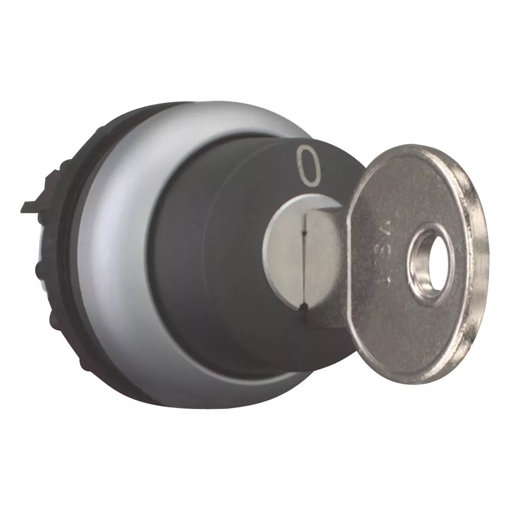 Element uruchamiający z kluczem, Zacisk śrubowy: RMQ-Titan, Urządzenie pojedyncze, Projekt: Obsługa kluczem, bez samopowrotu, Nie nadaje się do zamków systemowych, 2 położenia, I, Stopień ochrony: IP66, Pierścień czołowy: tytan, Podłączanie do SmartWire-DT: tak, z przyłączami SWD-RMQ, Wymiary przedniej części: 29,7, Instrukcje: Funkcja zatrzymania / powracania przycisku, może zostać zmieniony za pomocą elementów kodujących M22-XC-Y, Konfigurowalny kluczyk wysuwny z adapterami kodującymi M22-XC-…, Z 1 kluczem, Normy: IEC/EN 60947, VDE 0660, Stopień ochrony: IP66