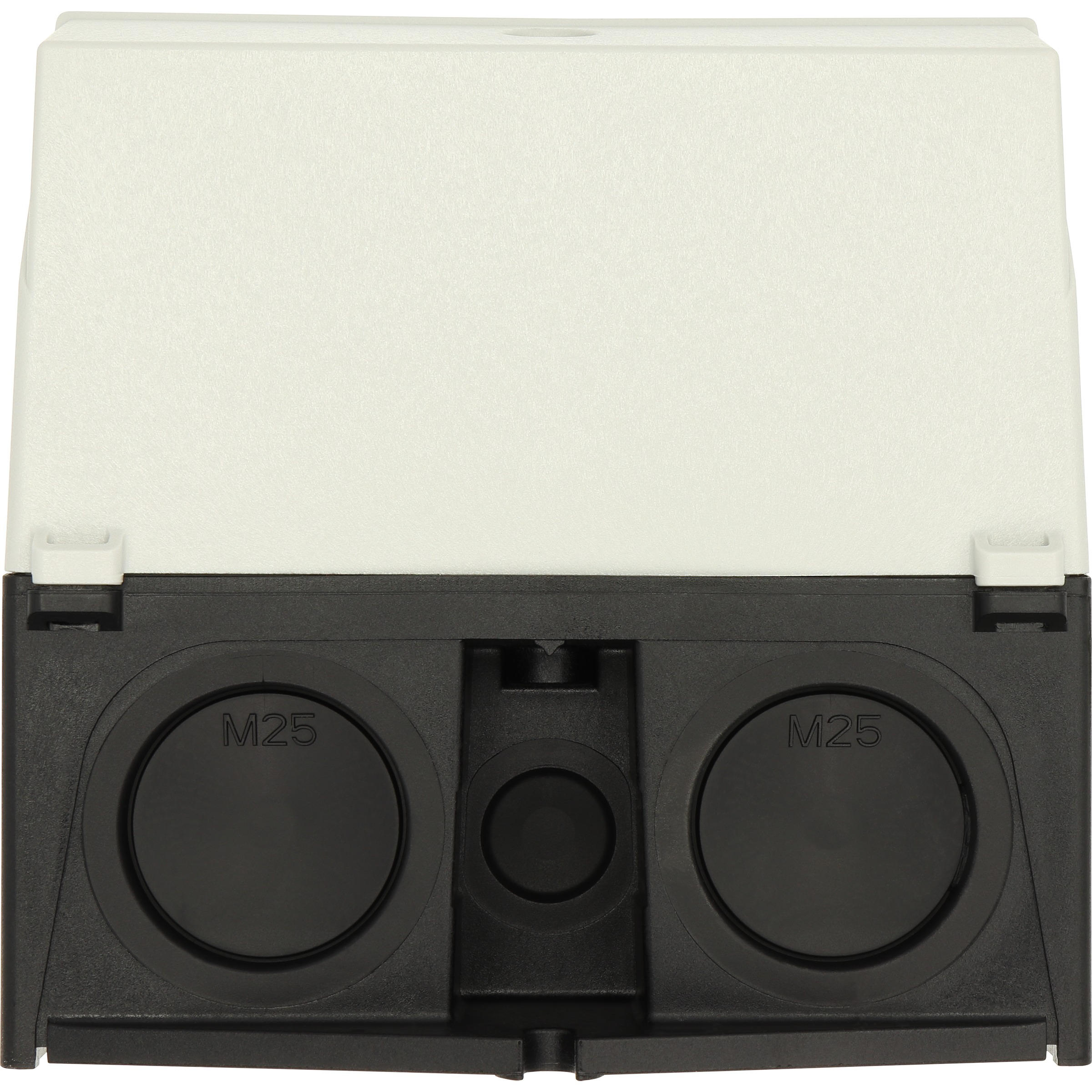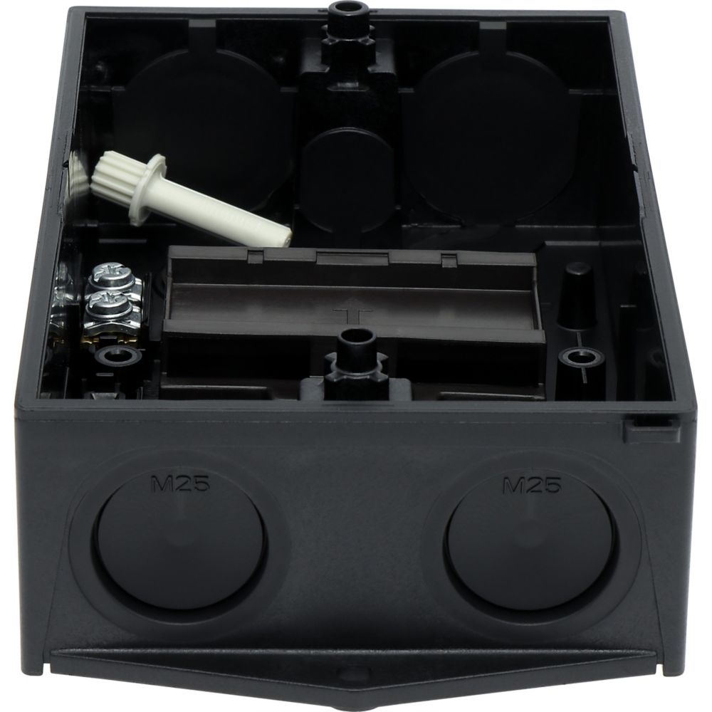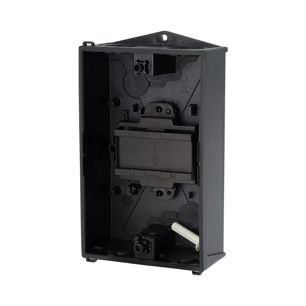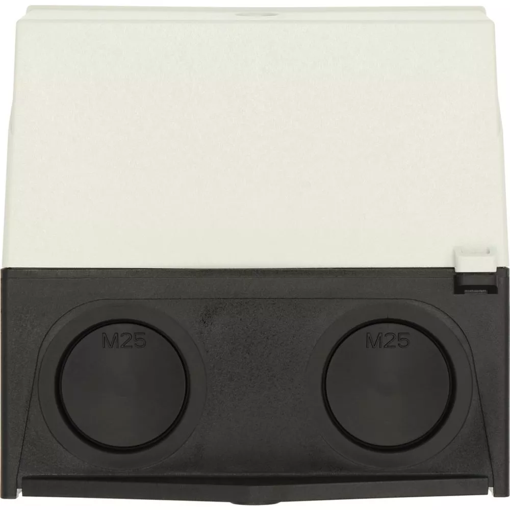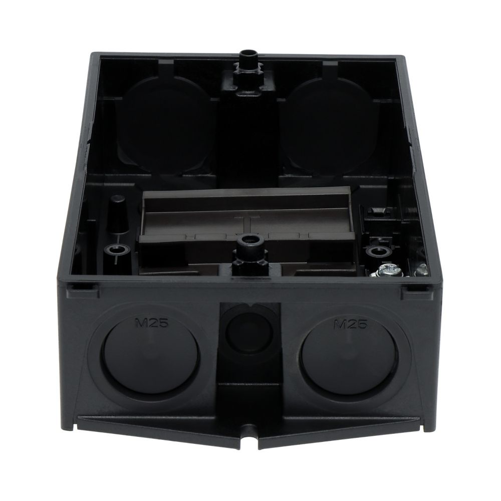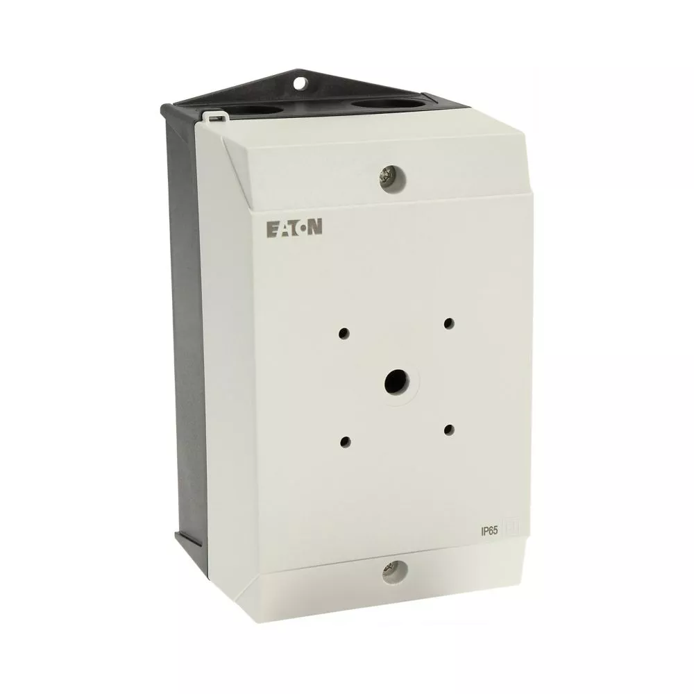 Mała obudowa, stopień ochrony IP65, poliwęglan wzmocniony włóknem szklanym, dolna część obudowy RAL 9005, czarny/tylko górna część obudowy RAL 7035, kolor jasnoszary, przebicie na wprowadzenie kabli metrycznych na górze, płyta podstawy i płyta tylna, membranowy przepust kablowy, 2 nasadki ochronne chroniące membranę do przeciągnięcia przewodów, lampka sygnalizacyjna L-. montowana w przepuście w podstawie M20/M25, do przełączników T3-../Z, 3 - 4 zespoły montażowe