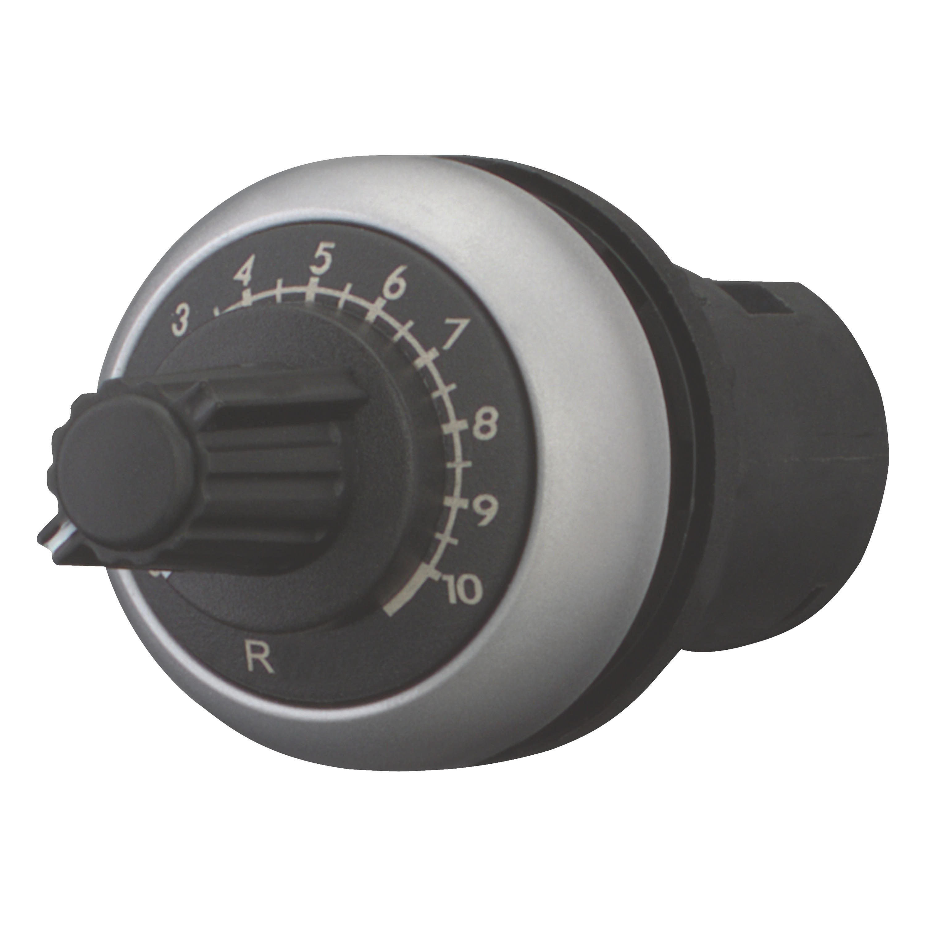 Potencjometr, Konstrukcja RMQ: Klasyczna, Odniesienie grupy części (np. DIL): M22, Średnice otworów montażowych: 22,5 mm, Urządzenie pojedyncze, Opis: 3 niezależne zaciski śrubowe, Dokładność wartości oporności: ± 10% (liniowo), Impedancja: R = 470 kΩ, moc znamionowa: 0P = 0,5 W, Stopień ochrony: IP66, Pierścień czołowy: tytan, Podłączanie do SmartWire-DT: nie, Normy: IEC/EN 60947, VDE 0660