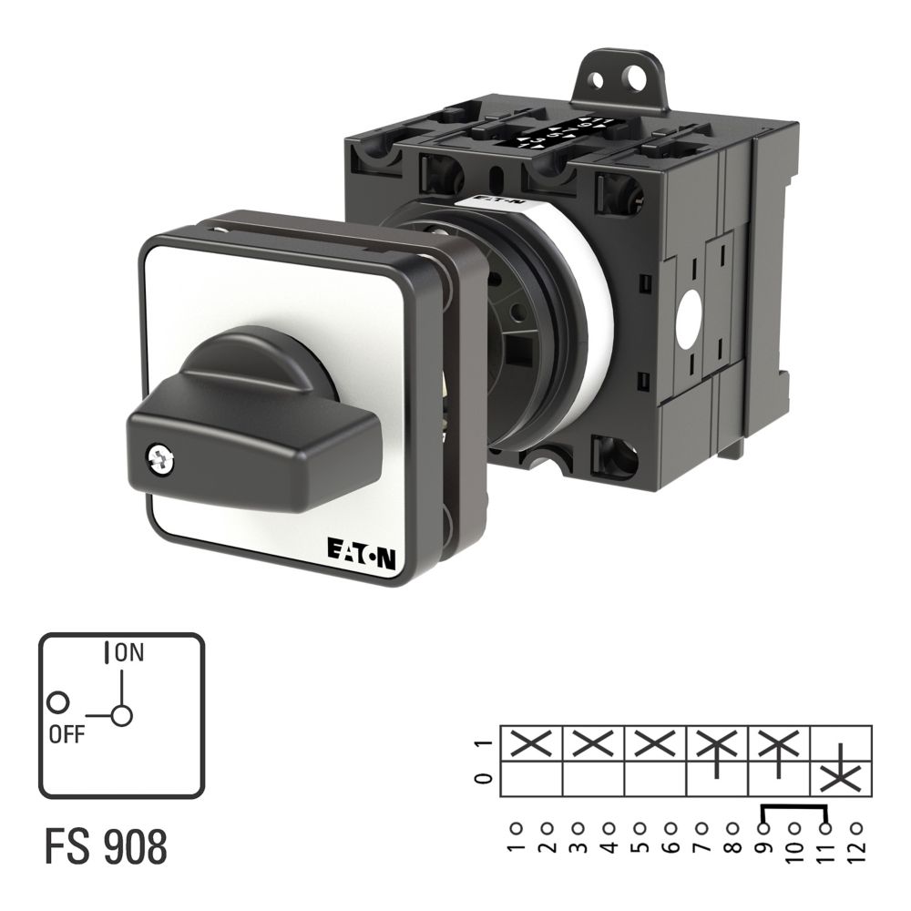 T3-3-8901/Z Przełącznik Zał.-Wył., 3 bieg. + N + 1 NO + 1 NC, 32 A, 90 °, montaż rozłączny, pokrętło czarne bez możliwości blokady