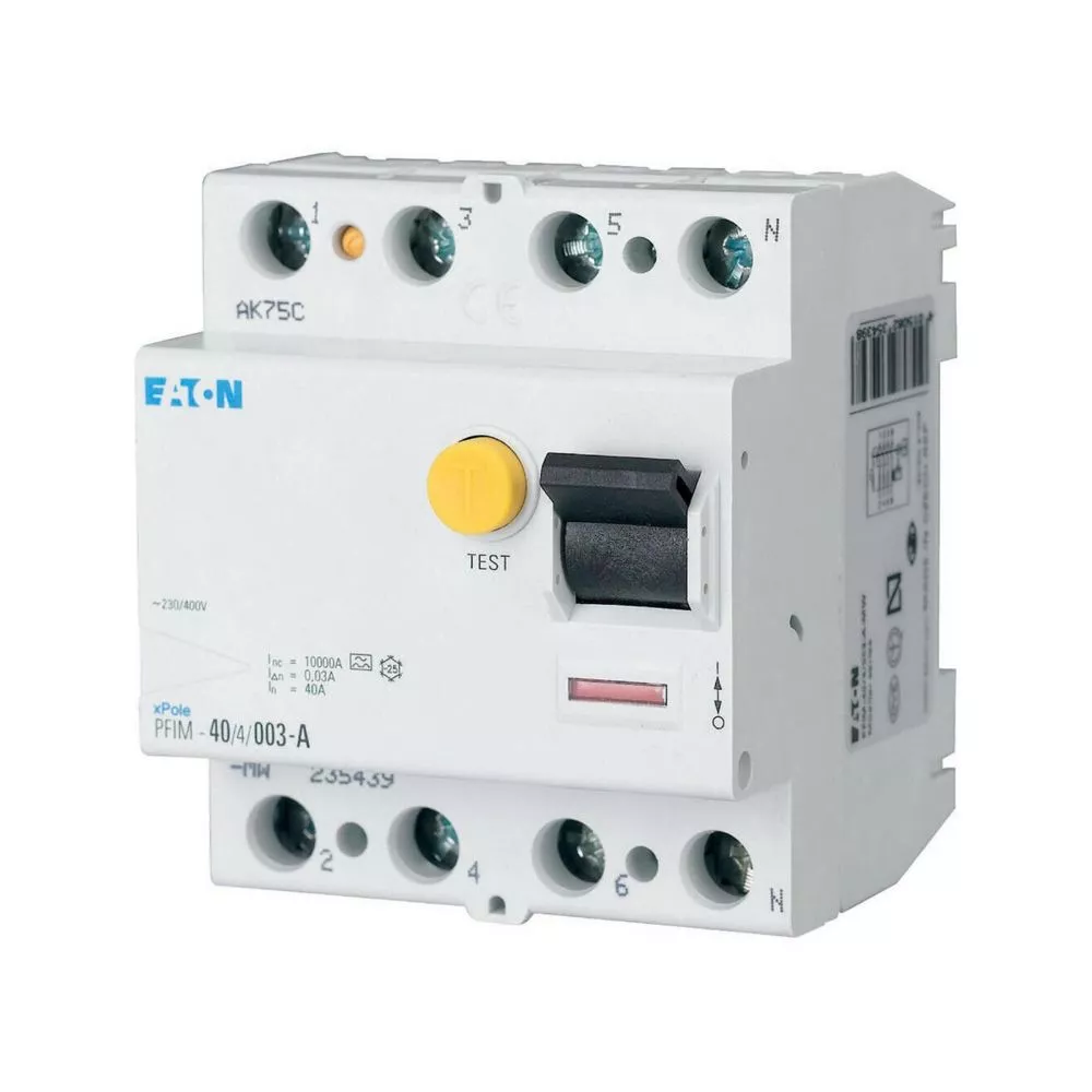 Aardlekschakelaar PFIM, 4-polig, Nominale stroom In: 40 A, Nominale kortsluitvastheid Icn: 10 kA, Nominale foutstroom IΔN: 0,1 A, Schakelapparatuur voor woningen en bedrijfstoepassingen
