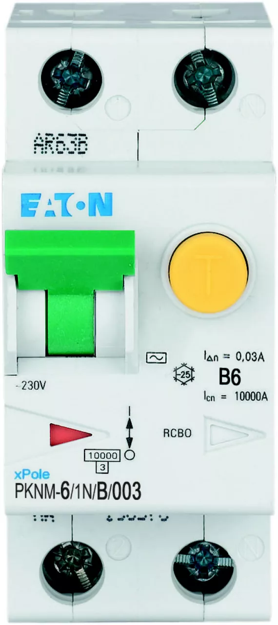 PKNM-6/1N/B/003-MW Wyłącznik kombinowany 10kA, In=6A, IΔN=0,03A, char. B, Typ AC, 1+N bieg. Seria PKNM