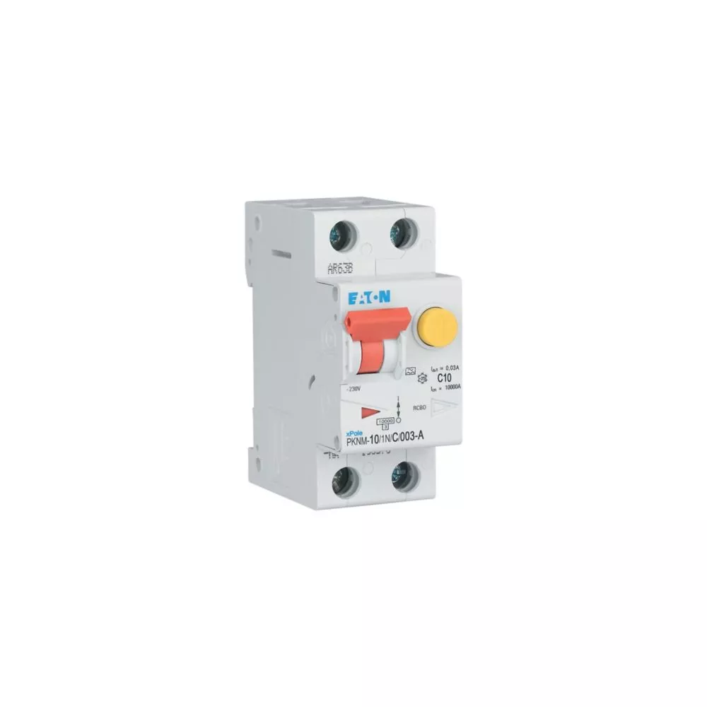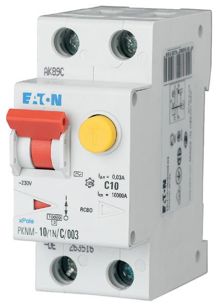 RCBO (reststroombeveiligingsschakelaar met thermische beveiliging) PKNM, 1-polig+N, Nominale stroom in: 10 A, Nominale foutstroom IΔN: 0,03 A, Nominaal schakelvermogen volgens IEC/EN 61009: 10 kA, Schakelapparatuur voor woningen en bedrijfsgebouwen