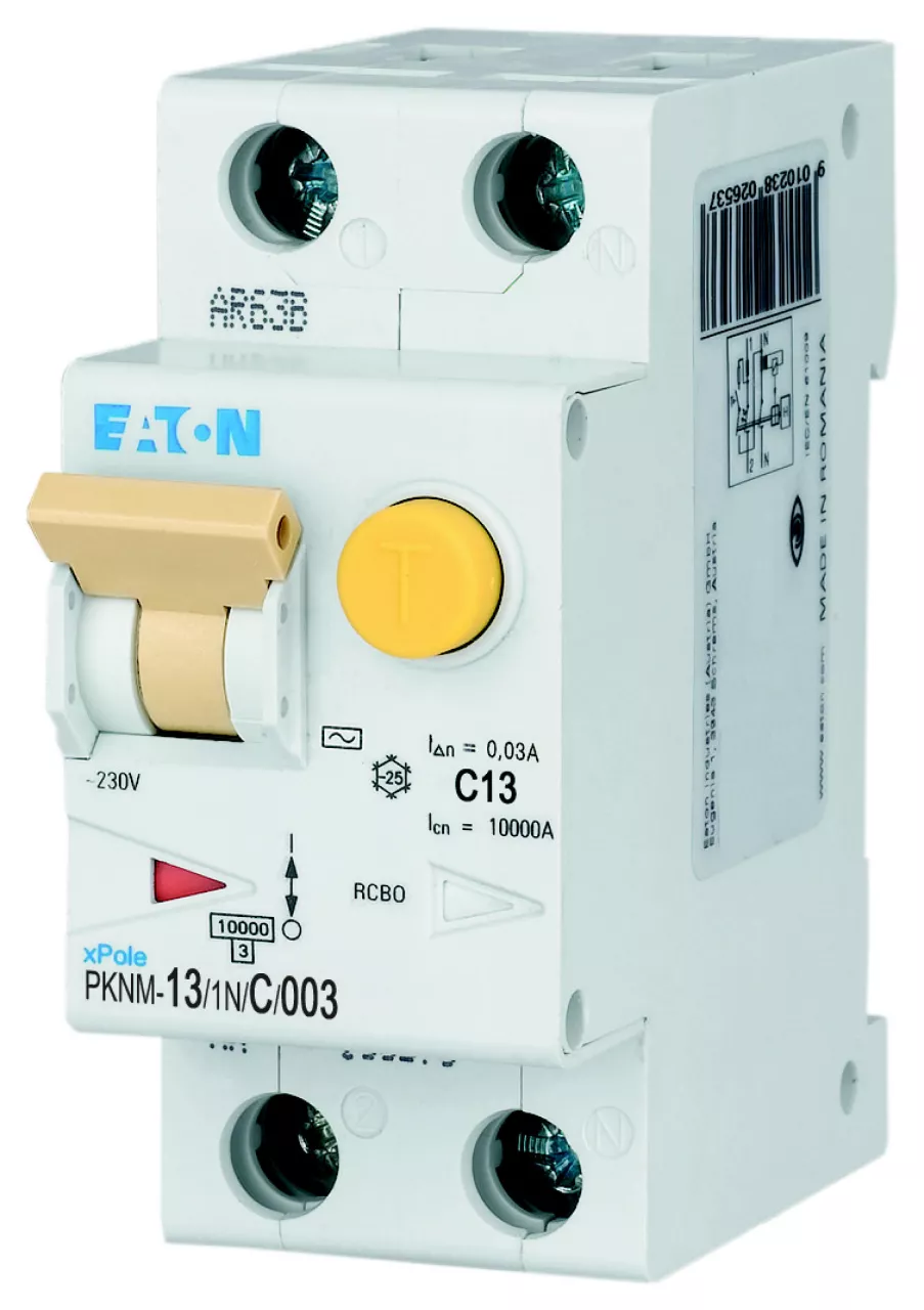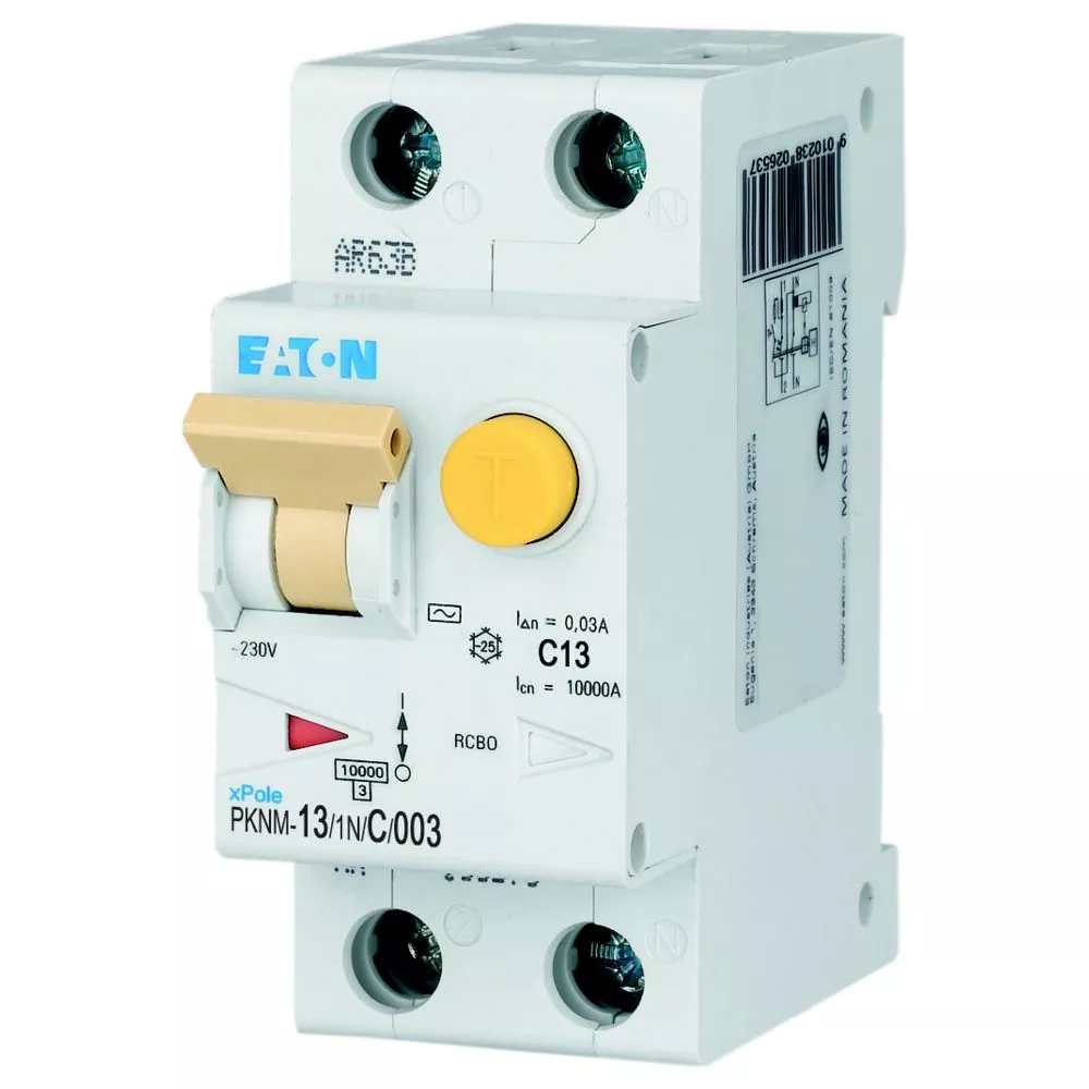 PKNM-13/1N/C/003-MW Wyłącznik kombinowany 10kA, In=13A, IΔN=0,03A, char. C, Typ AC, 1+N bieg. Seria PKNM