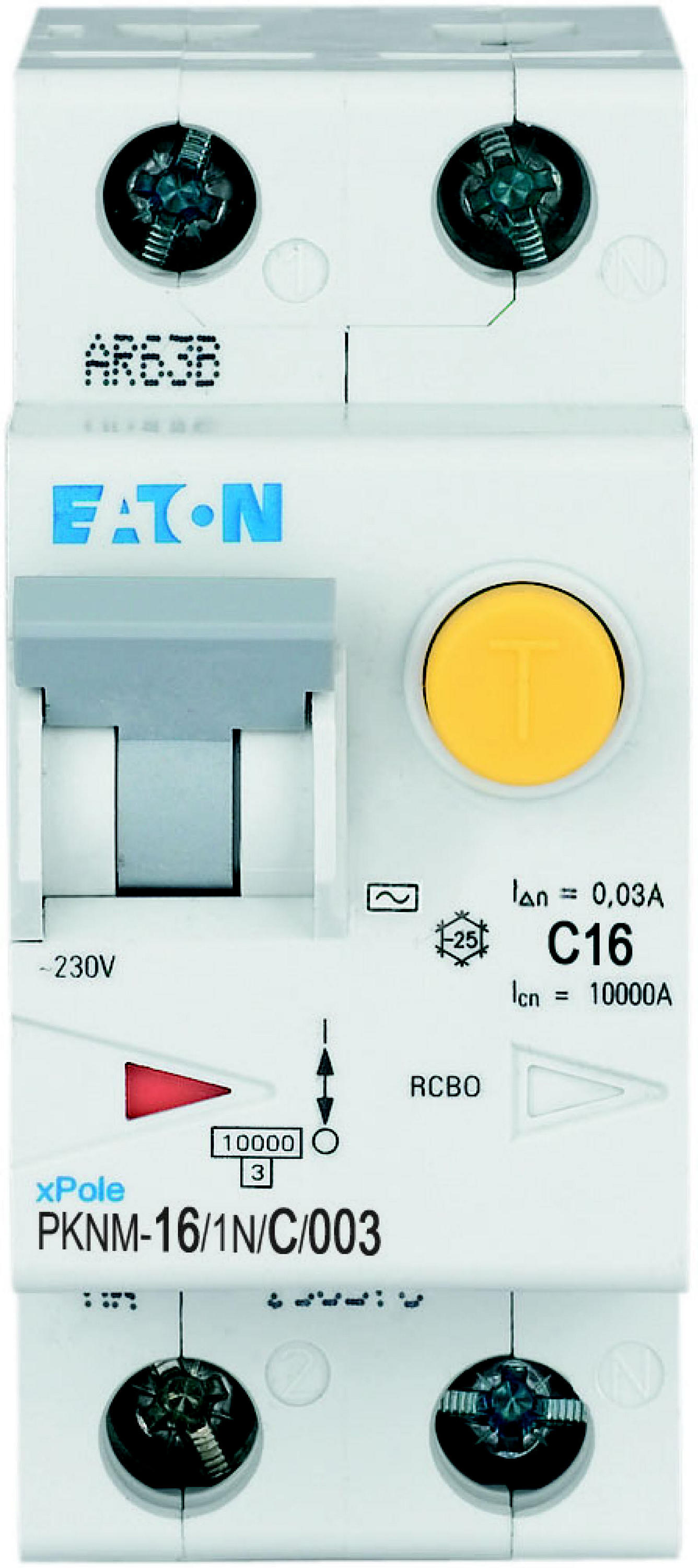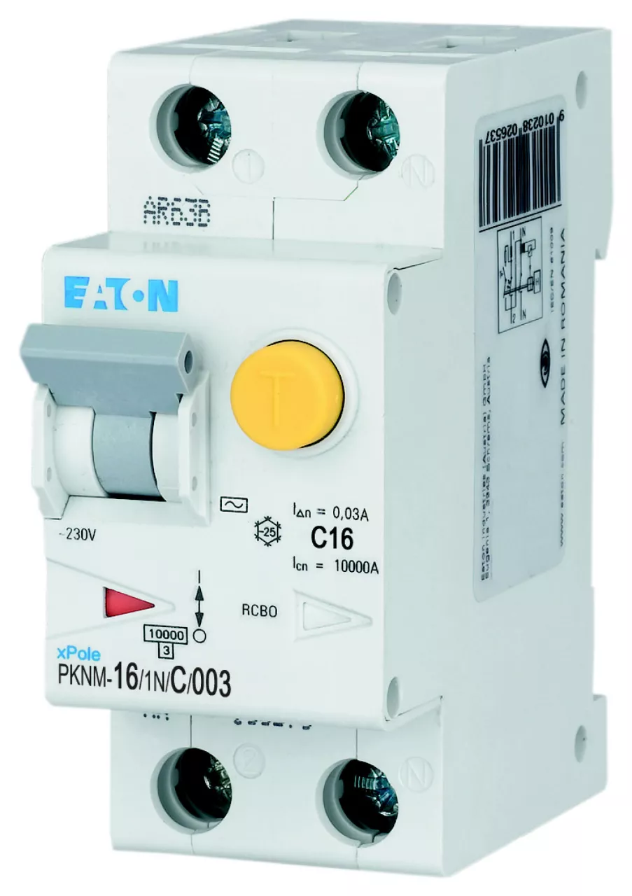 PKNM-16/1N/C/003-MW Wyłącznik kombinowany 10kA, In=16A, IΔN=0,03A, char. C, Typ AC, 1+N bieg. Seria PKNM