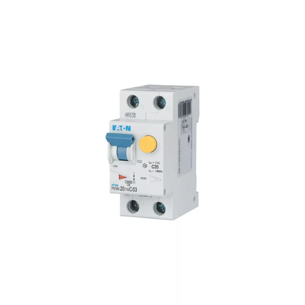 PKNM-20/1N/C/03-MW Wyłącznik kombinowany 10kA, In=20A, IΔN=0,3A, char. C, Typ AC, 1+N bieg. Seria PKNM