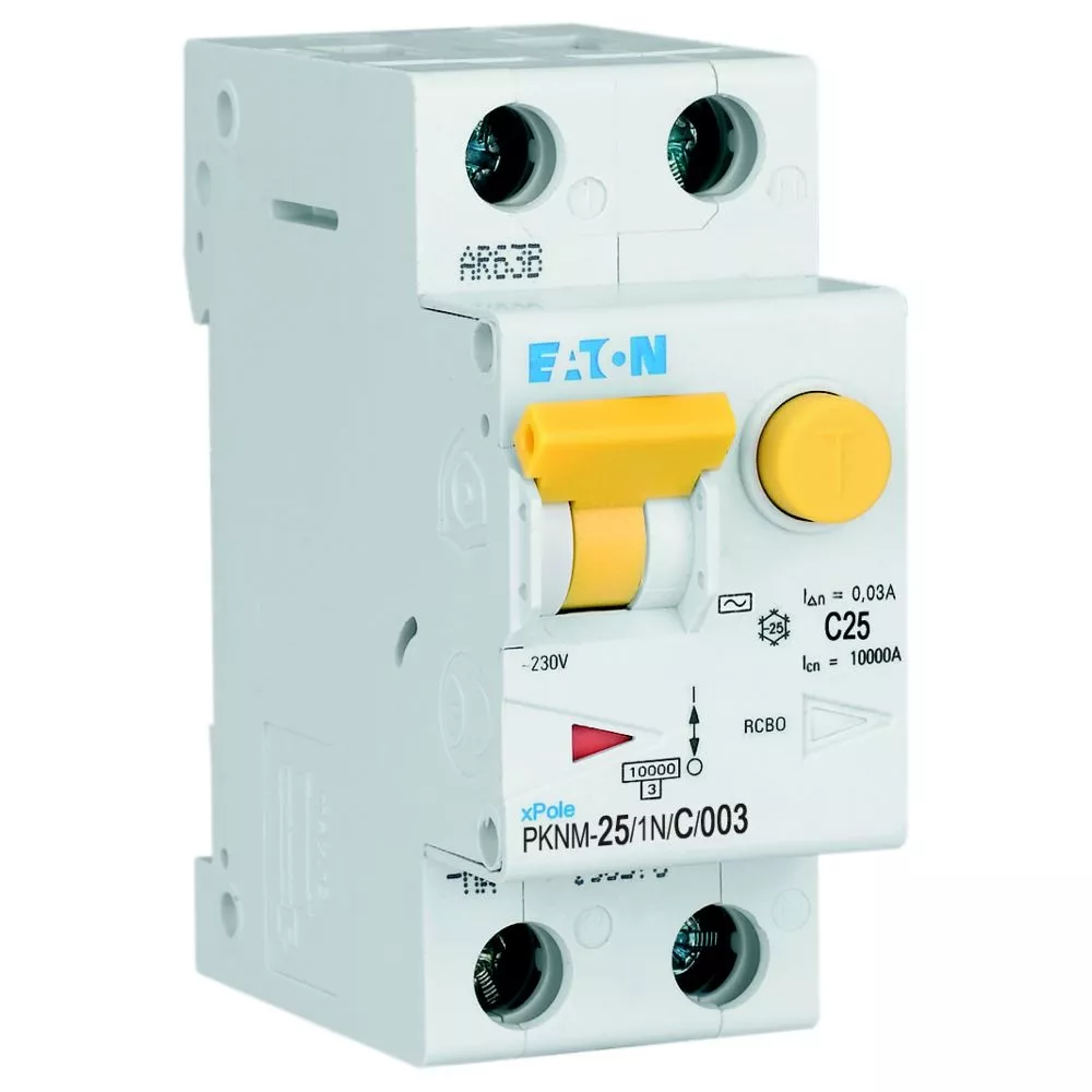 PKNM-25/1N/C/003-MW Wyłącznik kombinowany 10kA, In=25A, IΔN=0,03A, char. C, Typ AC, 1+N bieg. Seria PKNM