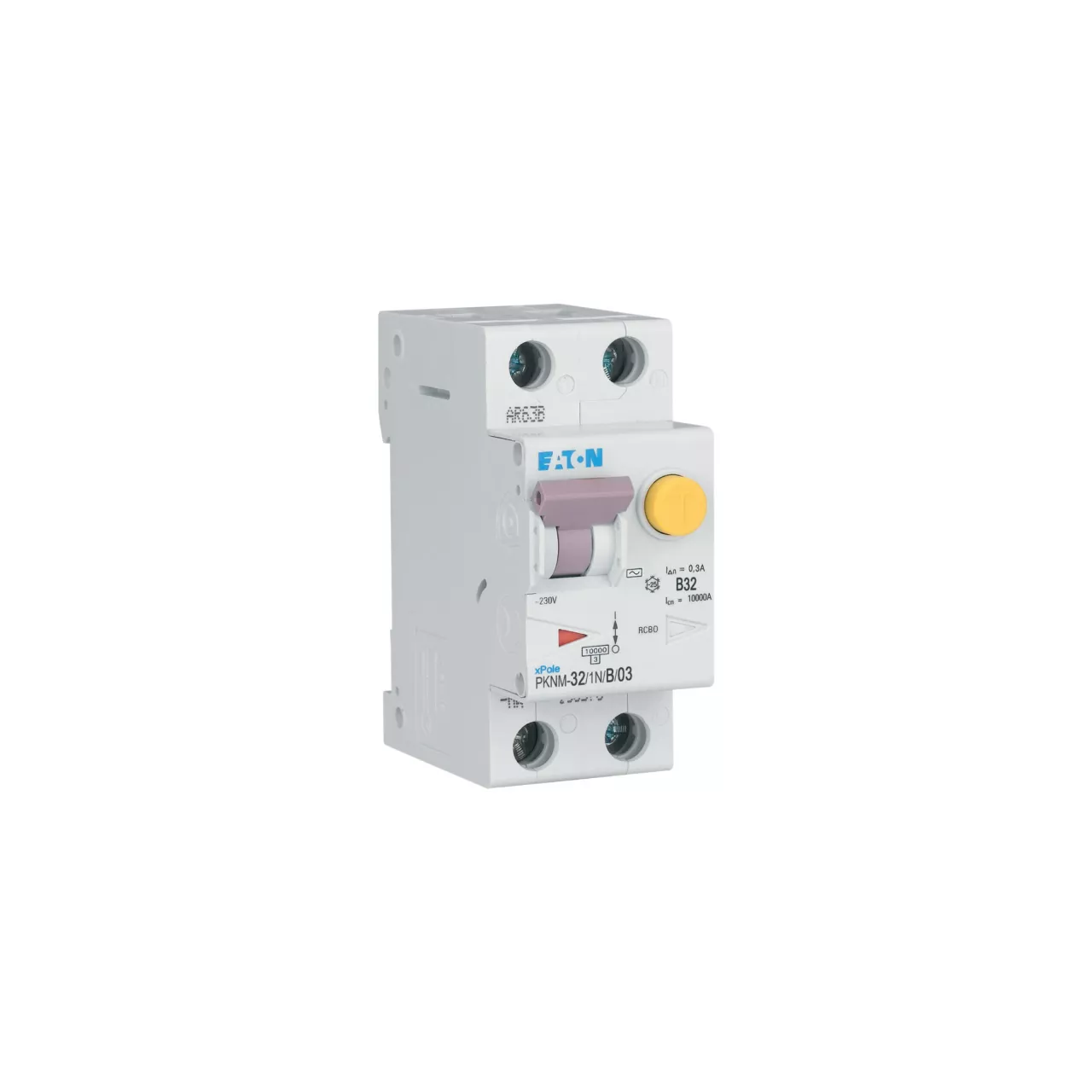 PKNM-32/1N/B/03-MW Wyłącznik kombinowany 10kA, In=32A, IΔN=0,3A, char. B, Typ AC, 1+N bieg. Seria PKNM