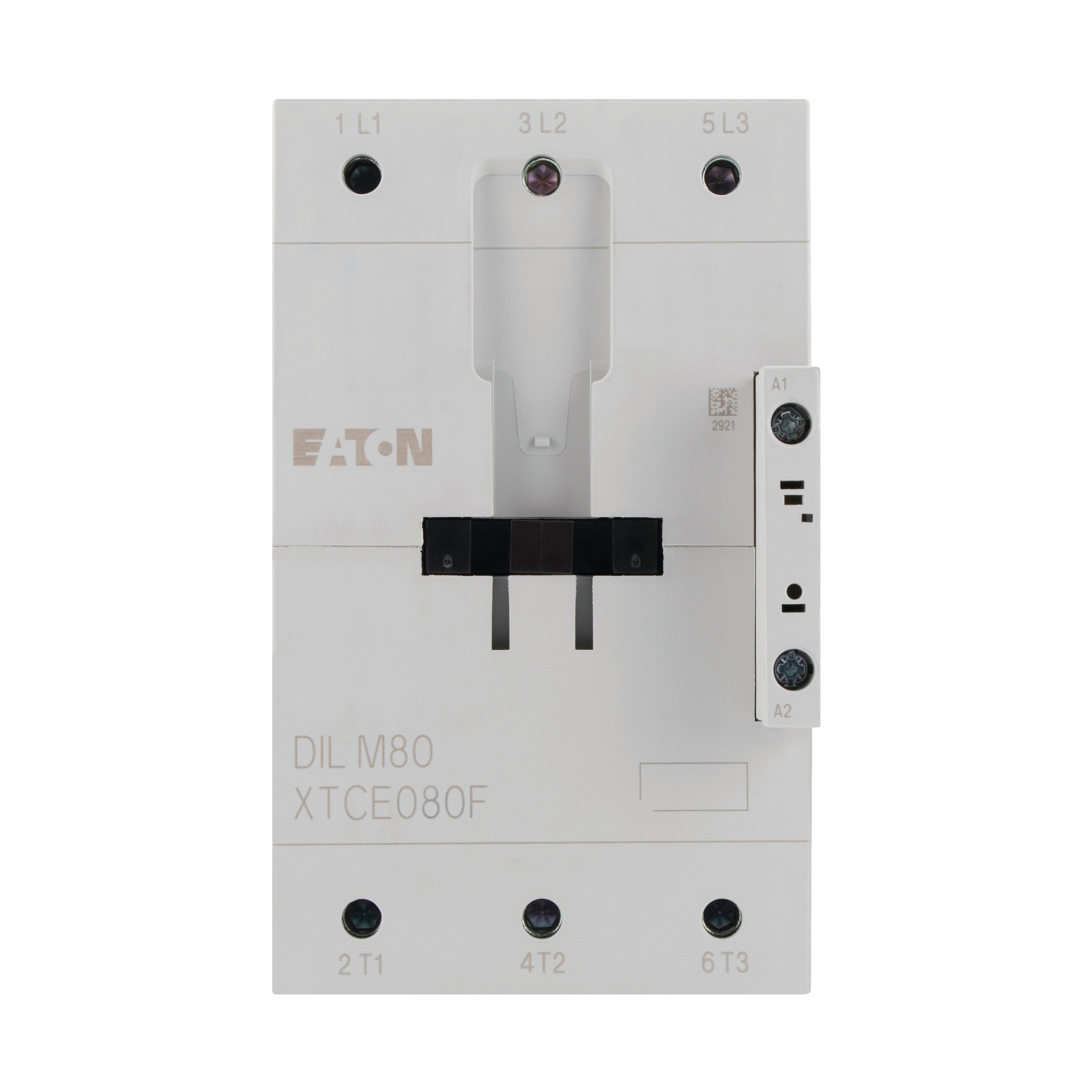 Stycznik, Zastosowanie: Styczniki do silników, Styczniki do 170 A, 3-biegunowy, Kategoria użytkowa: AC-1: Obciążenia nieindukcyjne lub obciążenia o małej indukcyjności, piece oporowe, NAC-3: Standardowe silniki indukcyjne AC: rozruch, wyłączanie w trakcie pracy, AC-4: Stand. silniki indukcyjne AC: rozruch, podłączanie, cofanie, praca spowolnion, Sposób podłączenia: Zaciski śrubowe, Uwagi: Odpowiednie również dla silników o klasie sprawności IE3., Urządzenia spełniające normy IE3 są oznaczone odpowiednim logo na opakowaniu., Liczba biegunów: 3-biegunowy, Znamionowy prąd roboczy AC-3, 380 V 400 V: Ie= 80 A, Znamionowy prąd roboczy AC-1 Prąd cieplny umowny na wolnym powietrzu, 3-biegunowy