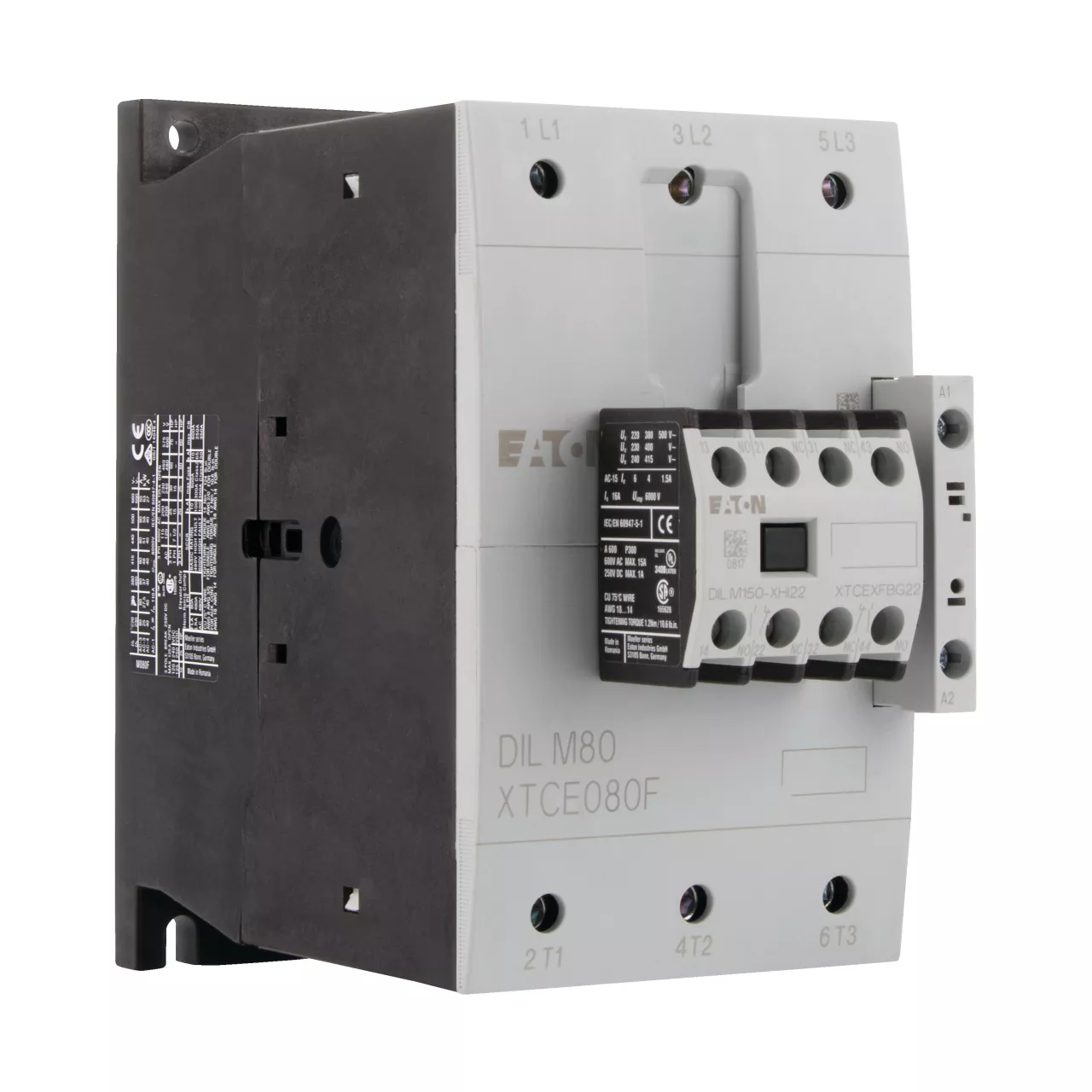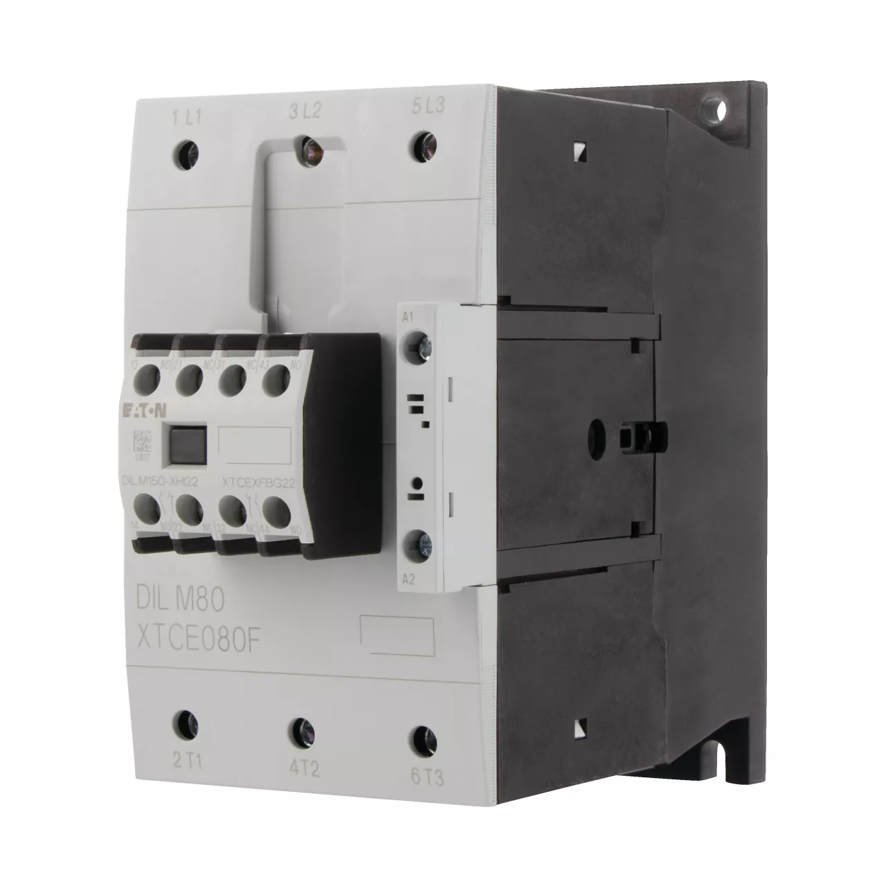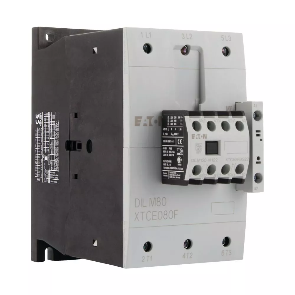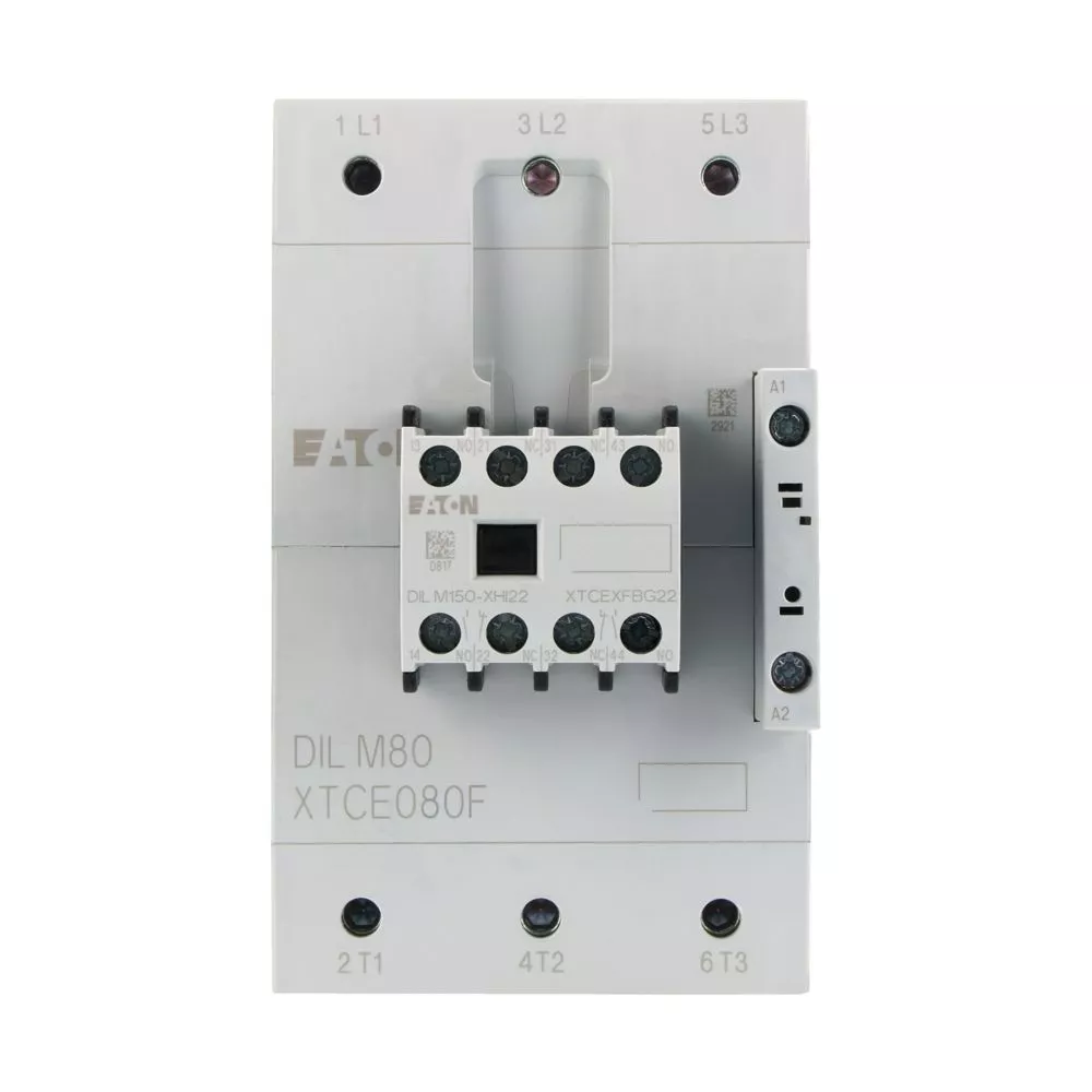 Leistungsschütz, Anwendung: Leistungsschütze für Motoren, Komplettgeräte größer 170 A, Gebrauchskategorie: AC-1: Nicht oder leicht induktive Lasten, Widerstandsöfen, NAC-3: Käfigläufermotoren: anlassen, während Betrieb ausschalten, AC-4: Käfigläufermotoren: anlassen, Einstecken, reversieren, Tippen, Anschlusstechnik: Schraubklemmen, Hinweise: Geeignet auch für Motoren der Effizienzklasse IE3., IE3-fähige Geräte sind mit dem Logo auf der Verpackung gekennzeichnet., Bemessungsbetriebsstrom AC-3, 380 V, 400 V: Ie= 80 A, Bemessungsbetriebsstrom AC-1 konventioneller thermischer Strom, 3-polig