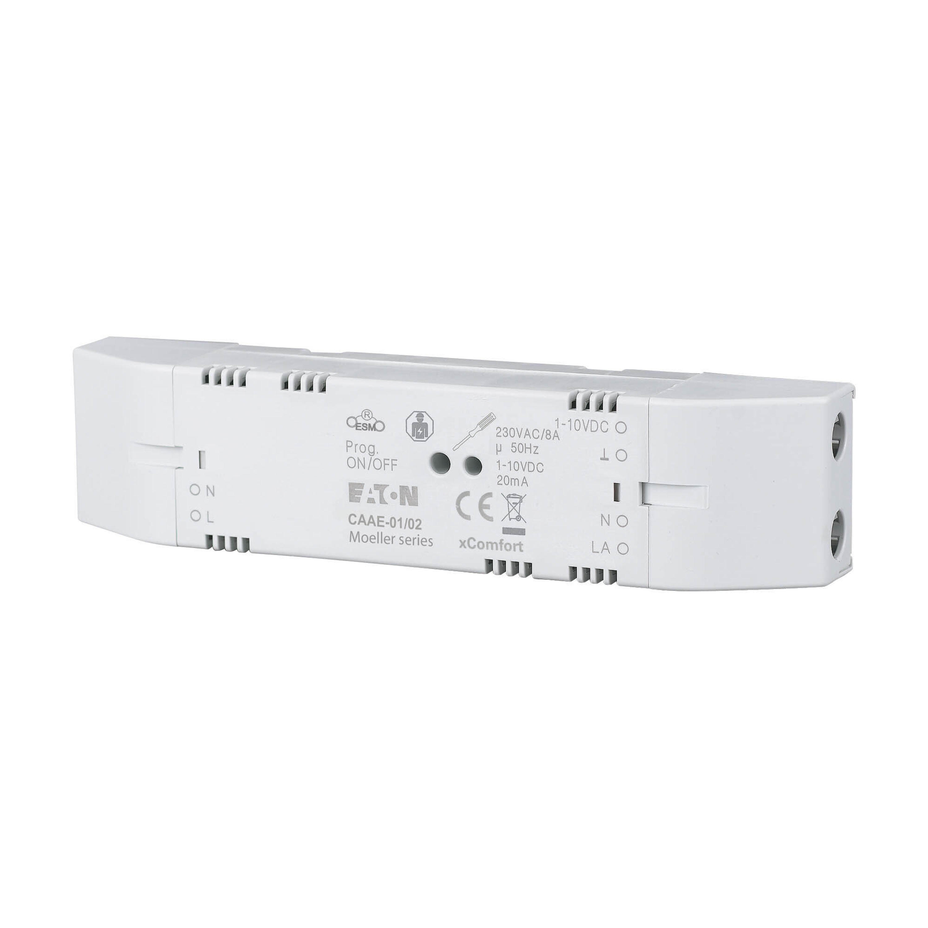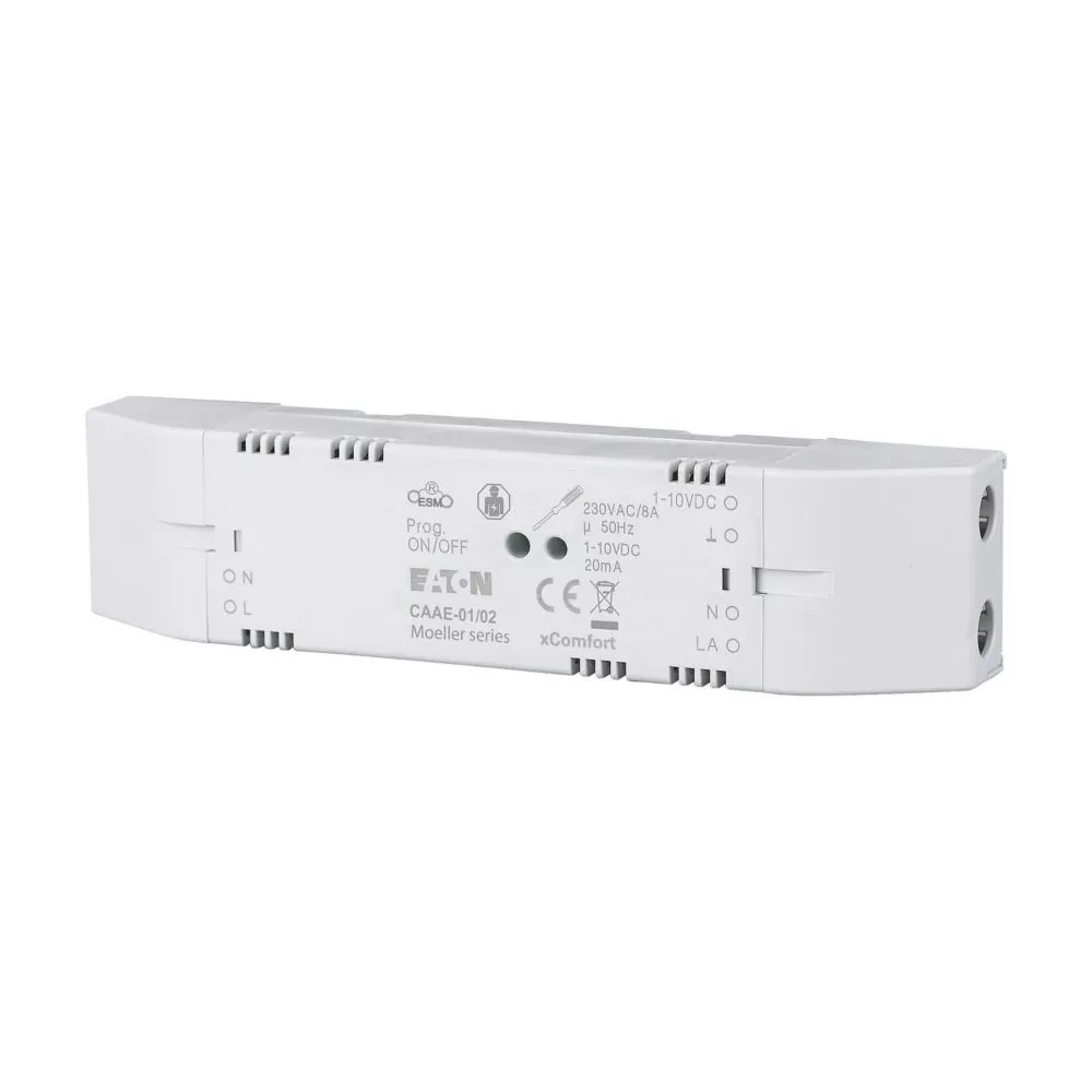 De analoge actor ontvangt, schakelt een relais in en regelt een stuurspanning 1- 10 VDC voor dimmers en elektronische voorschakel apparatuur (EVG) voor TL-lampen. De voeding wordt via het net verzorgd. Het apparaat wordt gemonteerd in een inbouwdoos, tussen het plafond of rechtstreeks in een armatuur.