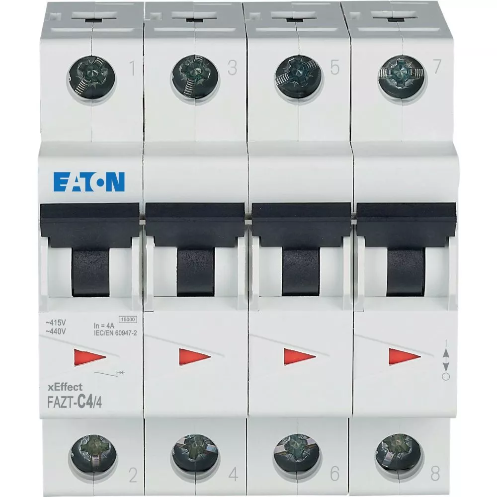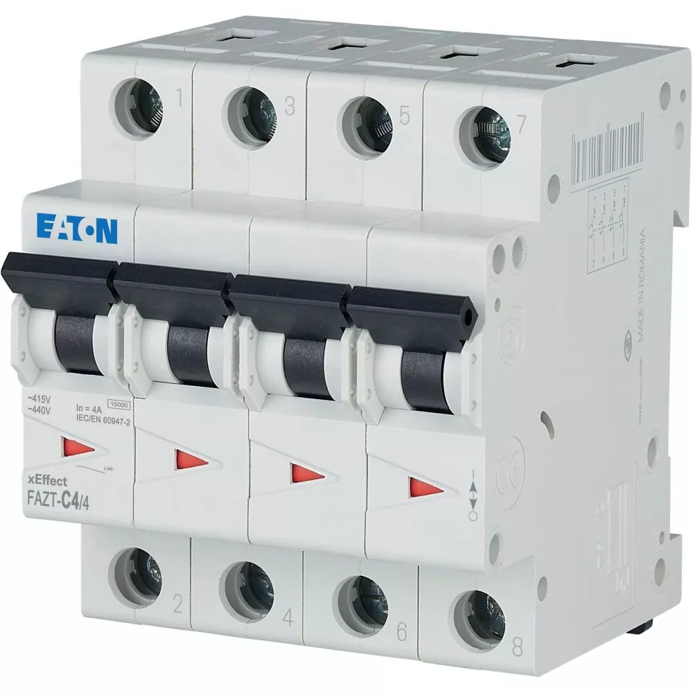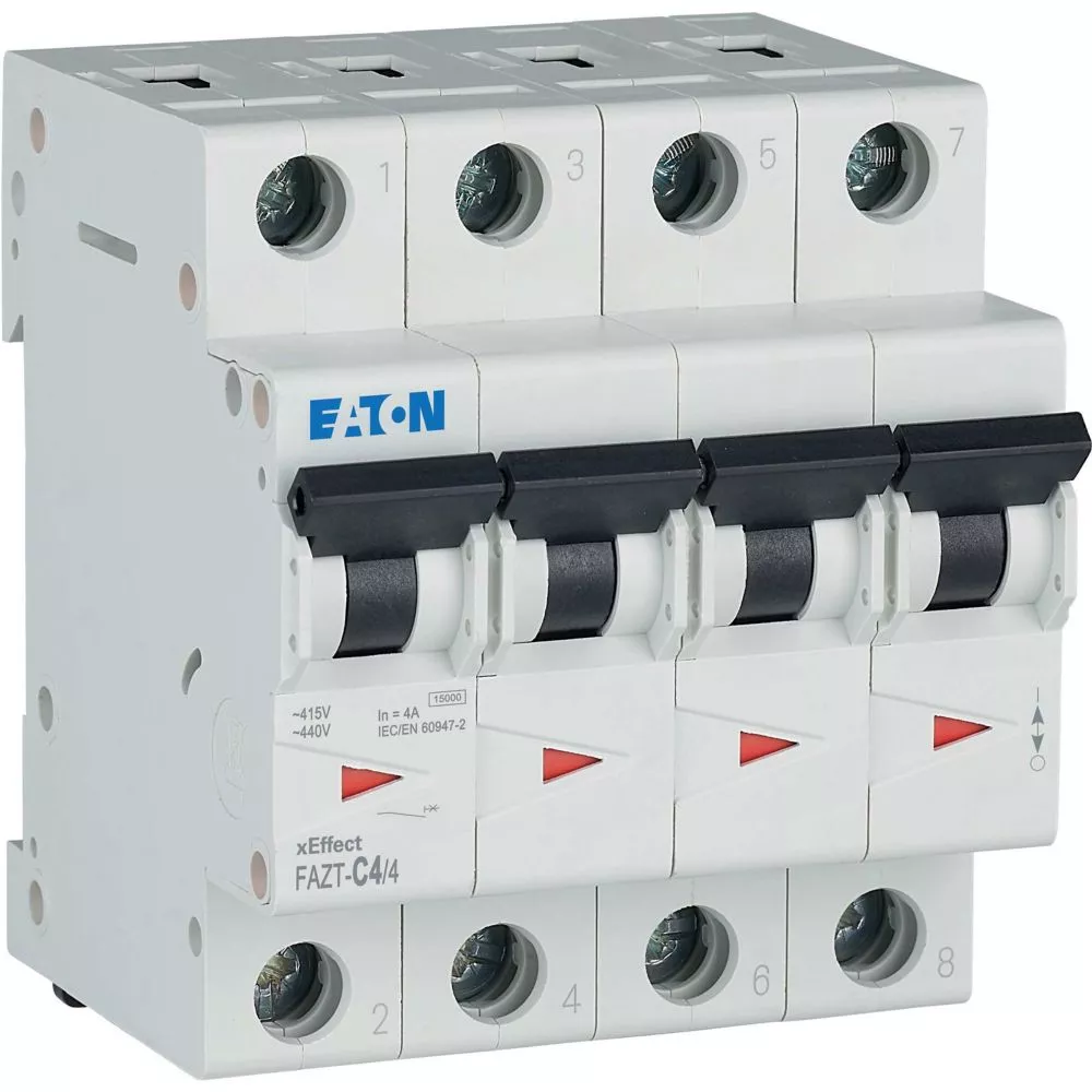 Installatieautomaat (MCB), FAZ-T, 4-polig, afschakelkarakteristiek: C, nominale stroom In: 4 A, Schakelapparatuur industriële en geavanceerde commerciële toepassingen