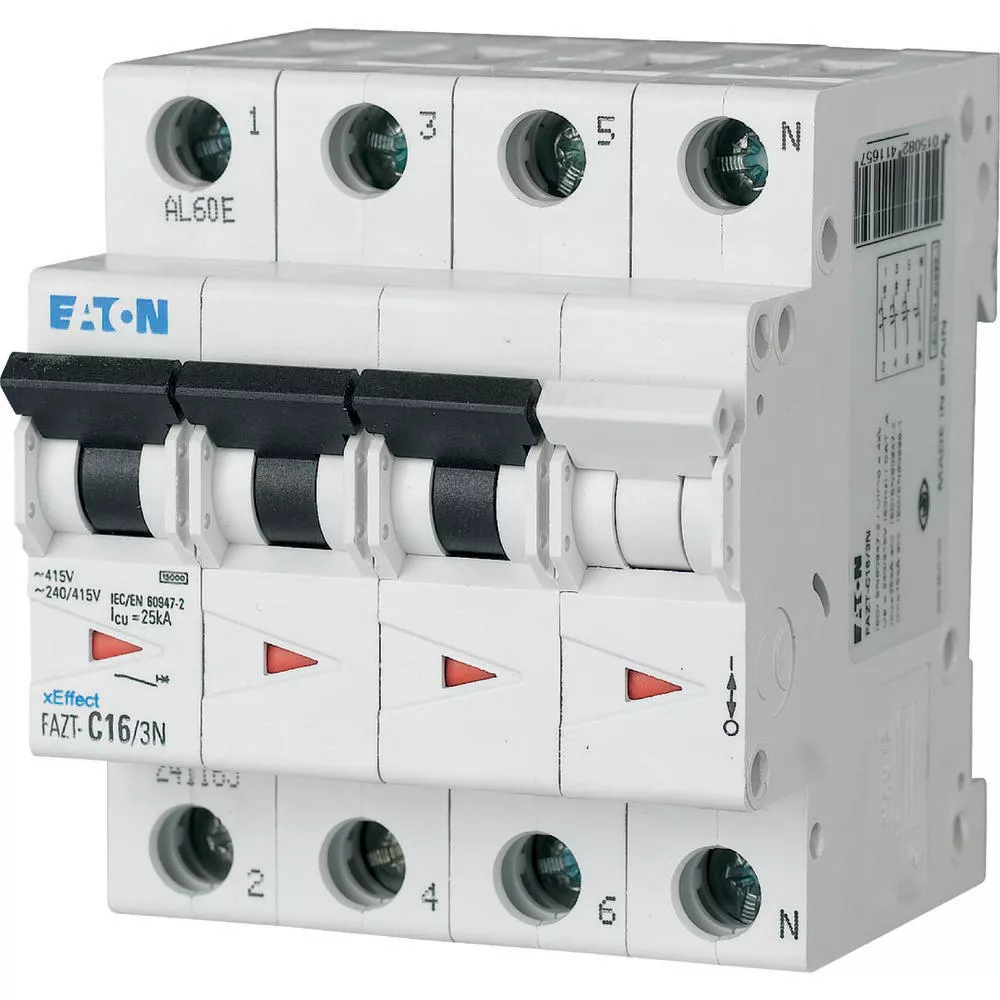 Installatieautomaat (MCB), FAZ-T, 3-polig+N, afschakelkarakteristiek: B, nominale stroom In: 6 A, Schakelapparatuur industriële en geavanceerde commerciële toepassingen
