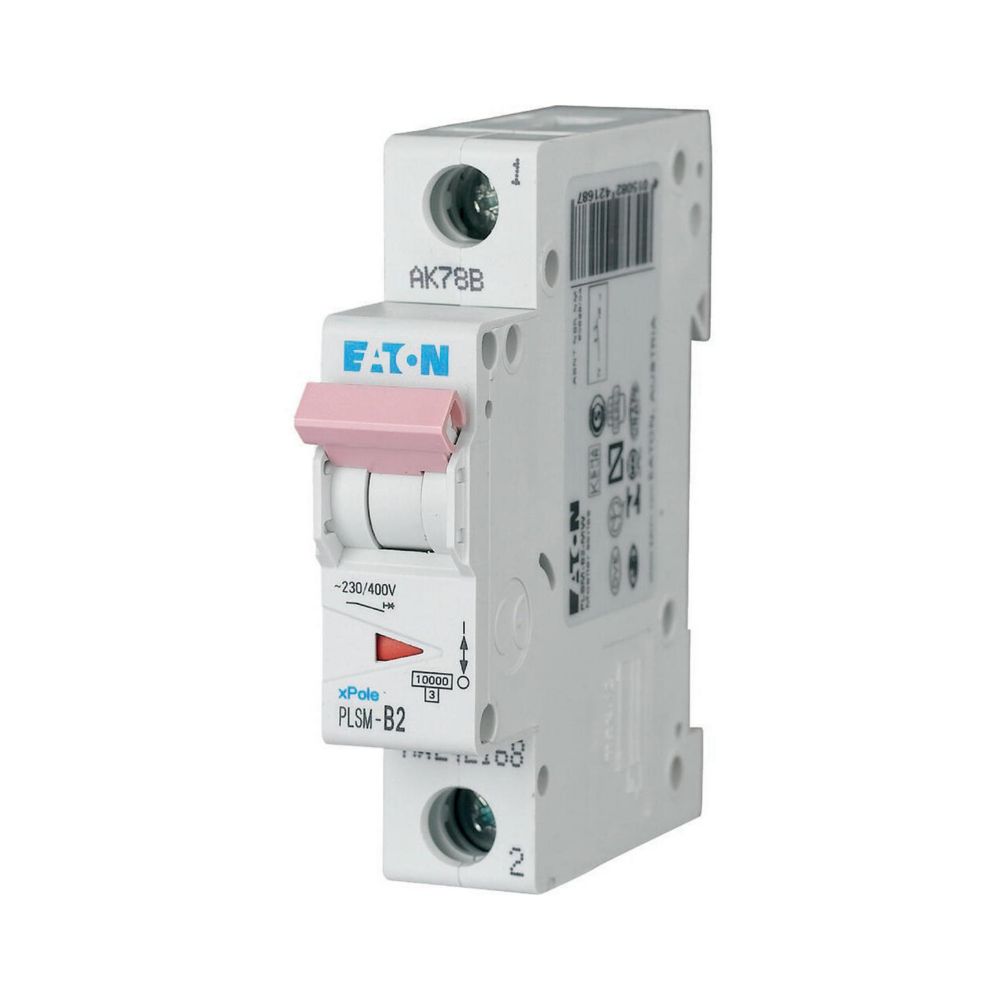 Installatieautomaat (MCB), PLSM, 1-polig, afschakelkarakteristiek: C, nominale stroom In: 2 A, nominaal schakelvermogen volgens IEC/EN 60898-1: 10 kA, Schakelapparatuur voor woningen en bedrijfstoepassingen