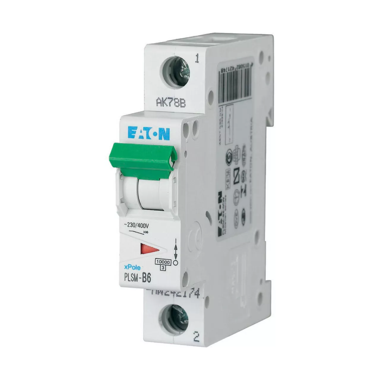 Installatieautomaat (MCB), PLSM, 1-polig, afschakelkarakteristiek: D, nominale stroom In: 6 A, nominaal schakelvermogen volgens IEC/EN 60898-1: 10 kA, Componenten voor residentiële en bedrijfstoepassingen