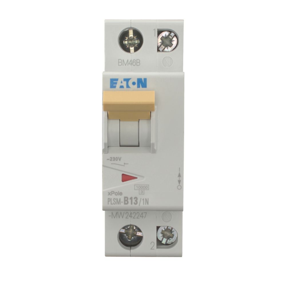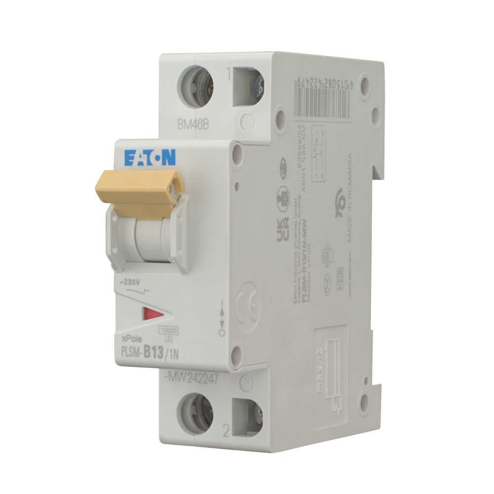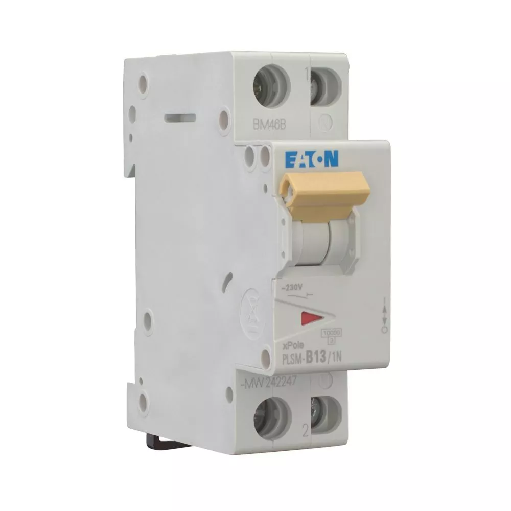 Installatieautomaat (MCB), PLSM, 1-polig + N, afschakelkarakteristiek: B, nominale stroom In: 13 A, nominaal schakelvermogen volgens IEC/EN 60898-1: 10 kA, Schakelapparatuur voor woningen en bedrijfstoepassingen