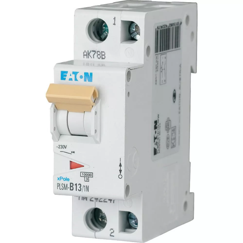 Installatieautomaat (MCB), PLSM, 1-polig + N, afschakelkarakteristiek: C, nominale stroom In: 13 A, nominaal schakelvermogen volgens IEC/EN 60898-1: 10 kA, Schakelapparatuur voor woningen en bedrijfstoepassingen