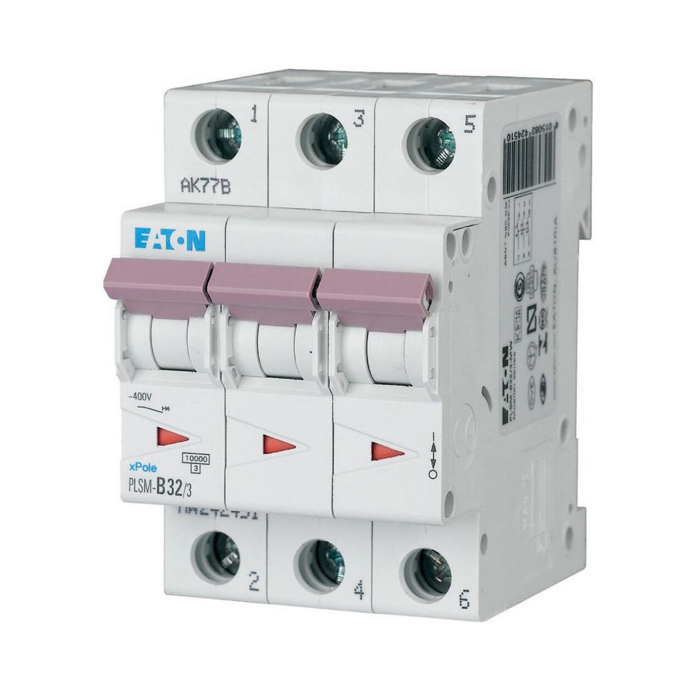 Installatieautomaat (MCB), PLSM, 3-polig, afschakelkarakteristiek: B, nominale stroom In: 32 A, nominaal schakelvermogen volgens IEC/EN 60898-1: 10 kA, Componenten voor residentiële en bedrijfstoepassingen