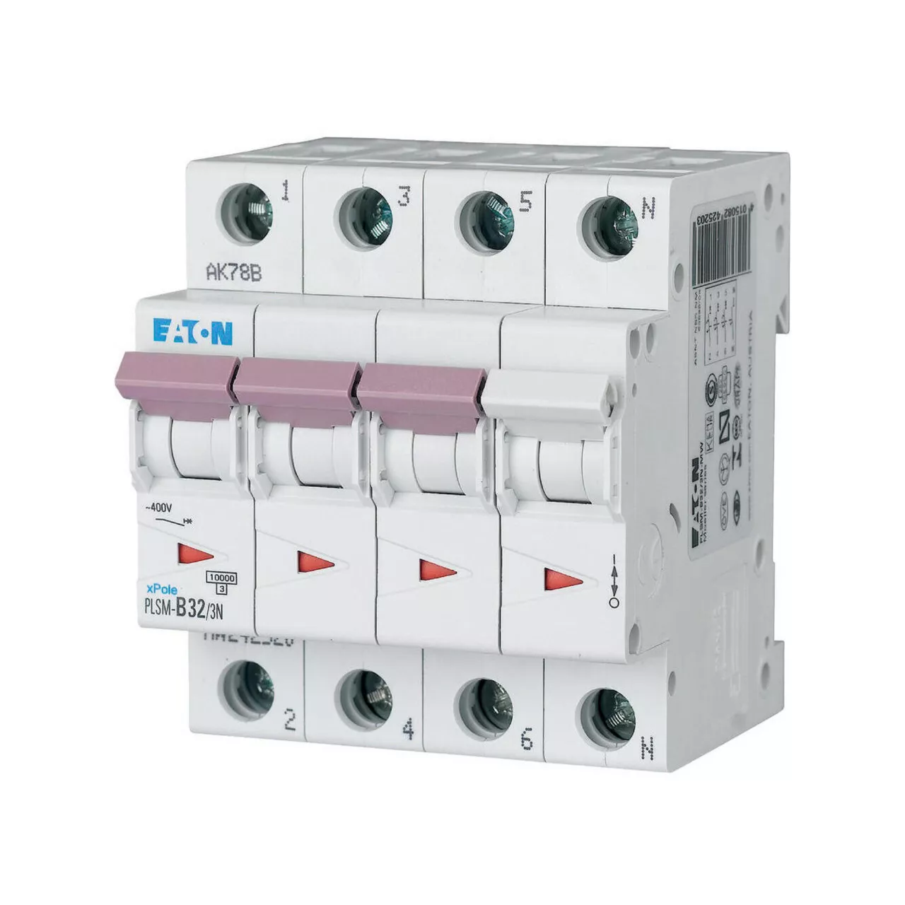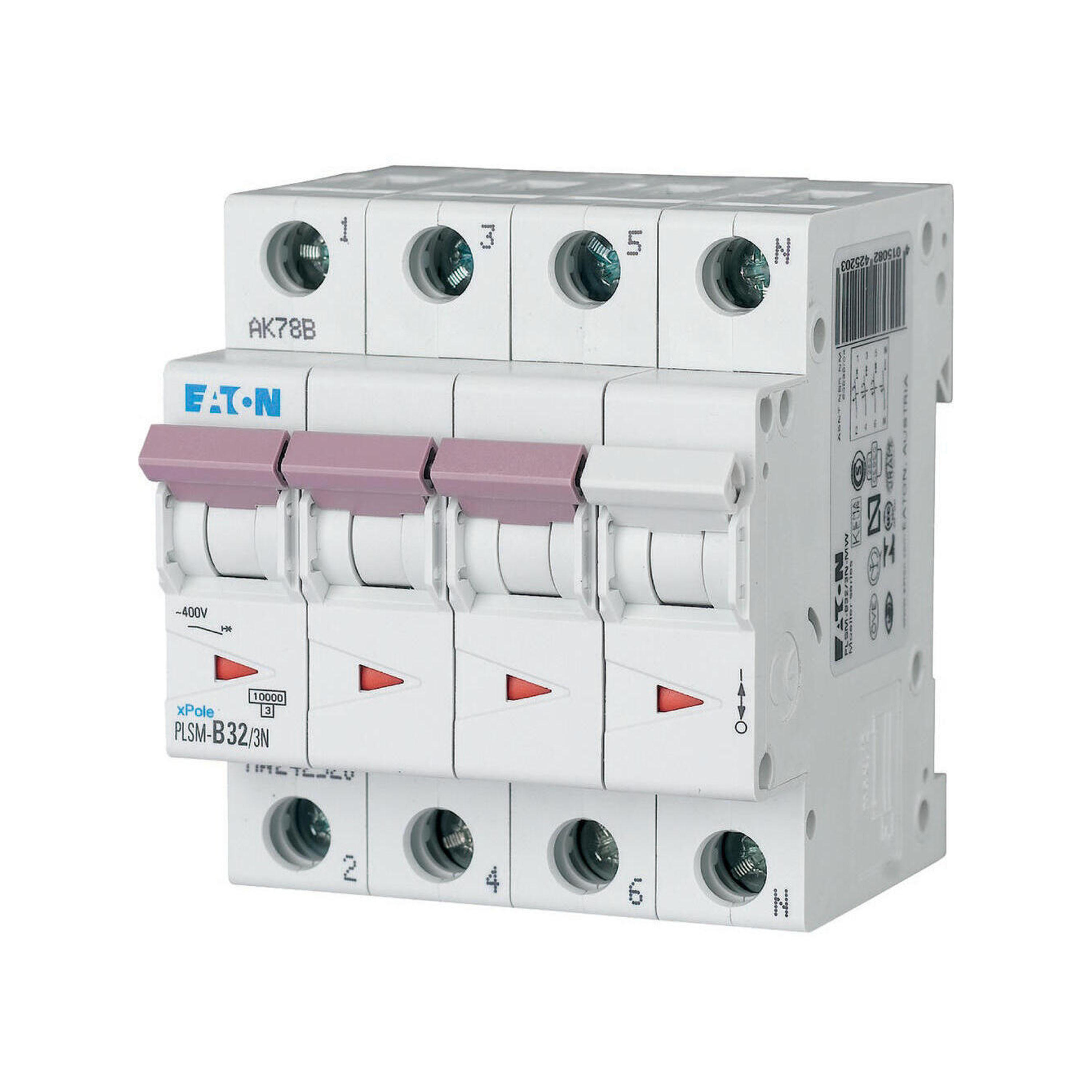 Installatieautomaat (MCB), PLSM, 3-polig+N, afschakelkarakteristiek: C, nominale stroom In: 32 A, nominaal schakelvermogen volgens IEC/EN 60898-1: 10 kA, Componenten voor residentiële en bedrijfstoepassingen