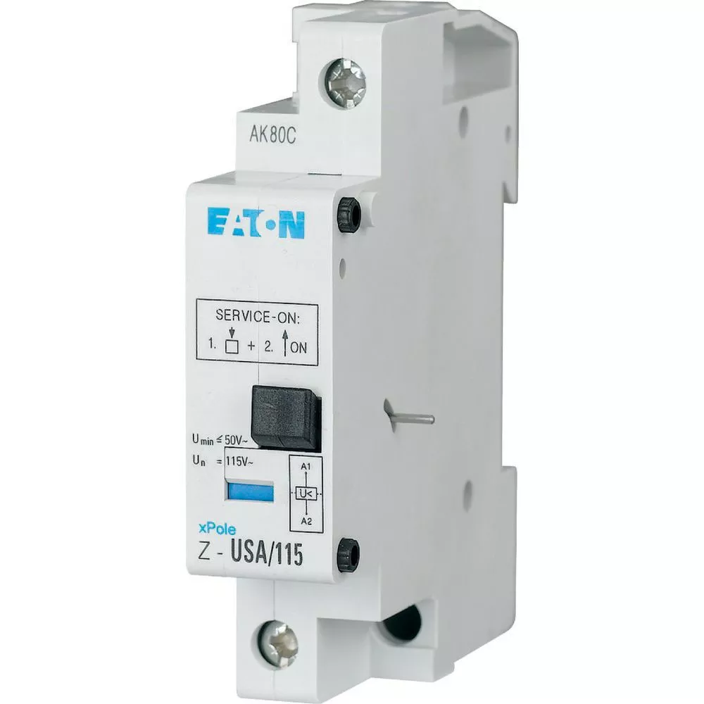 Unterspannungsfreigabe schraubbar, Bemessungsbetriebsspannung 115 V AC, unverzögerte Funktion, Frequenz 50 bis 60 Hz, Schließschwelle 80 % von Un, Auslöseschwelle 30 % von Un, Standardfrontabmessung 45 mm, Montagebreite 1 MU (17,5 mm), DIN-Schienenmontage, Klemmenquerschnitt 1 bis 2 x 2,5 mm²