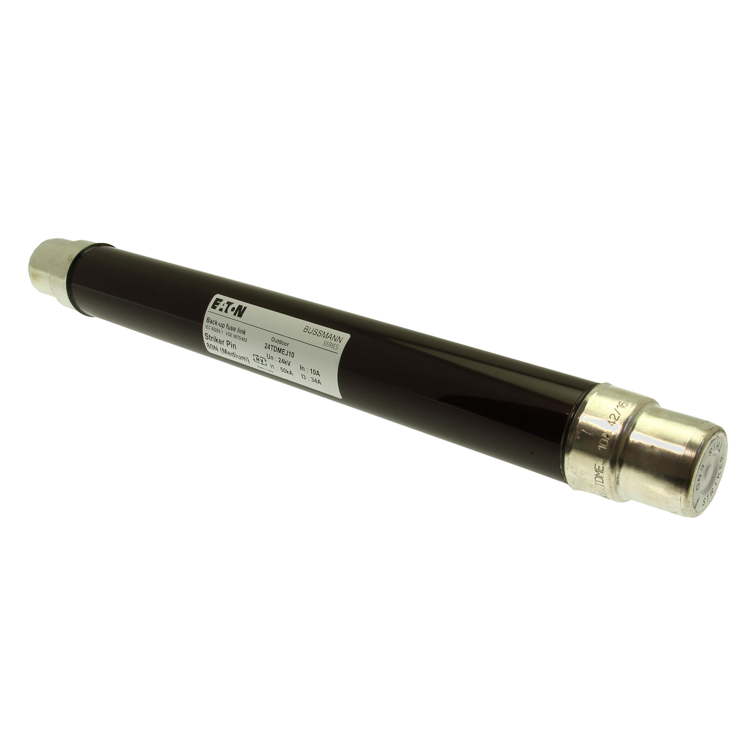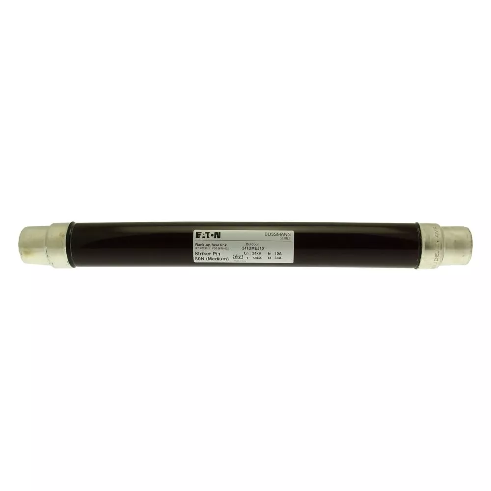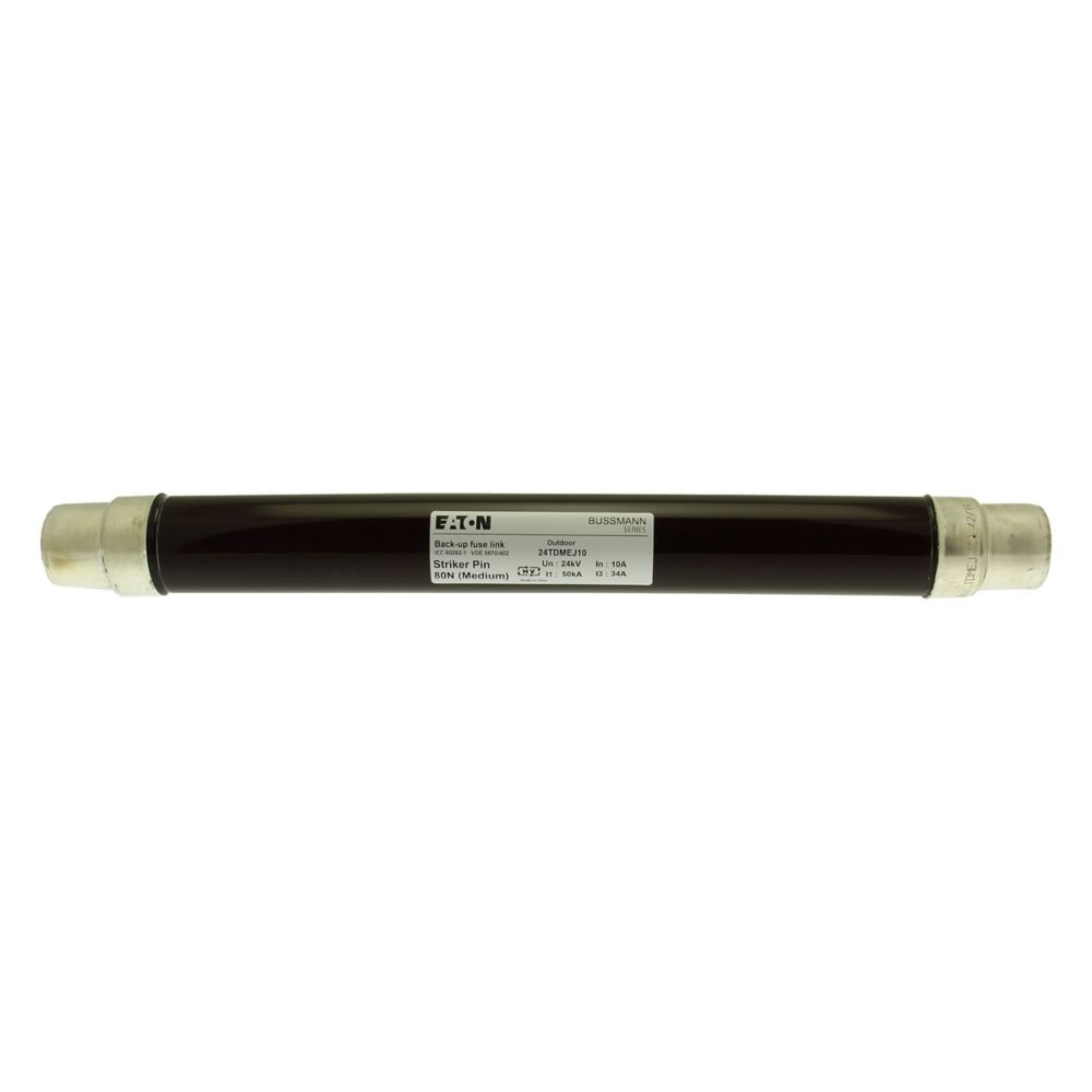 Sicherung, Sicherungseinsatz, Mittelspannung, 10 A, AC 24 kV, 2 Zoll, 51 x 442 mm, Pufferung, DIN, mit Schlagmelder, Transformatorschutz, Einsatz im Innen- oder Außenbereich, DIN 43625, VDE 0670 Teil 4, VDE 0670 Teil 402, IEC 60282-1, Ausschaltvermögen 50 kA