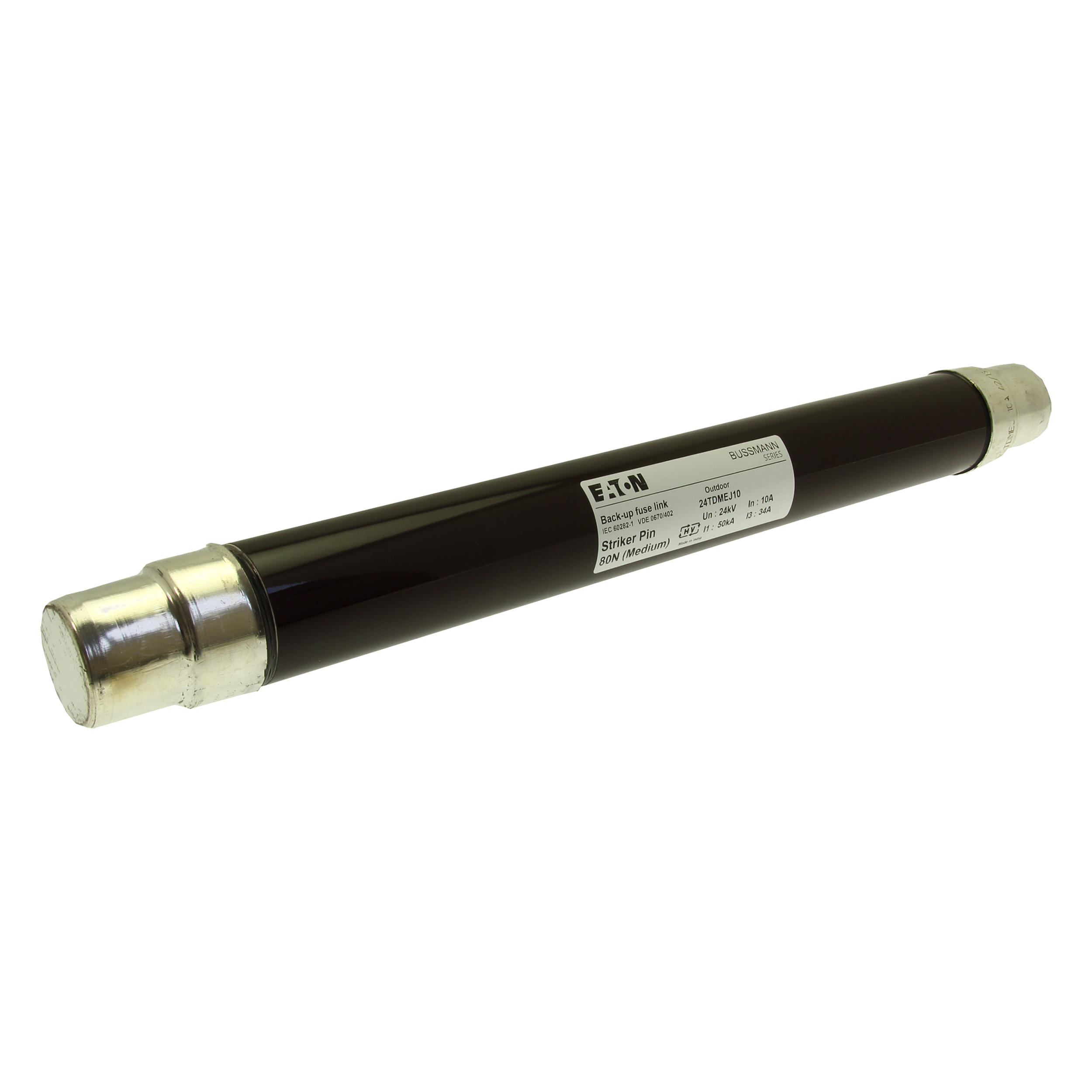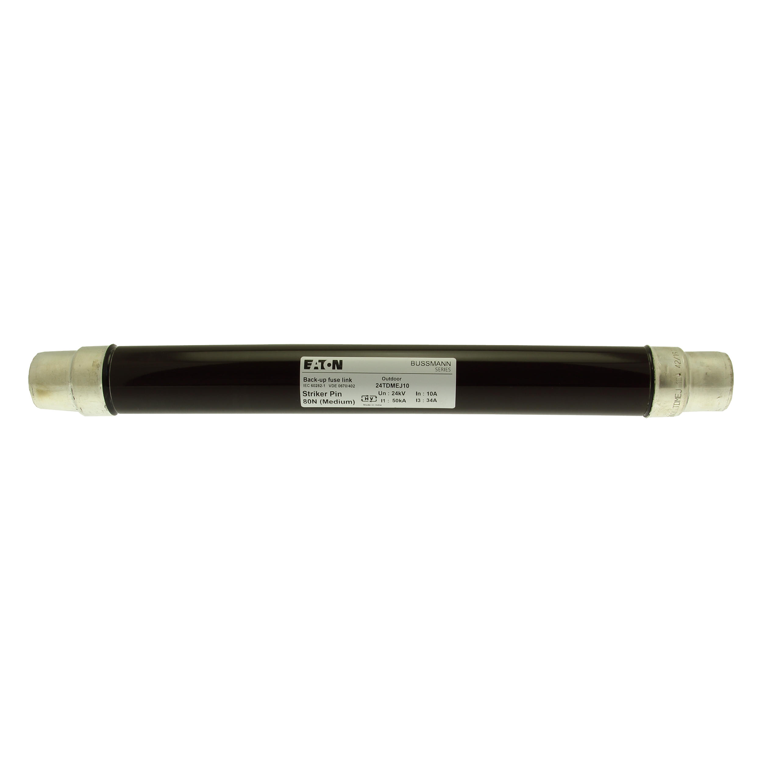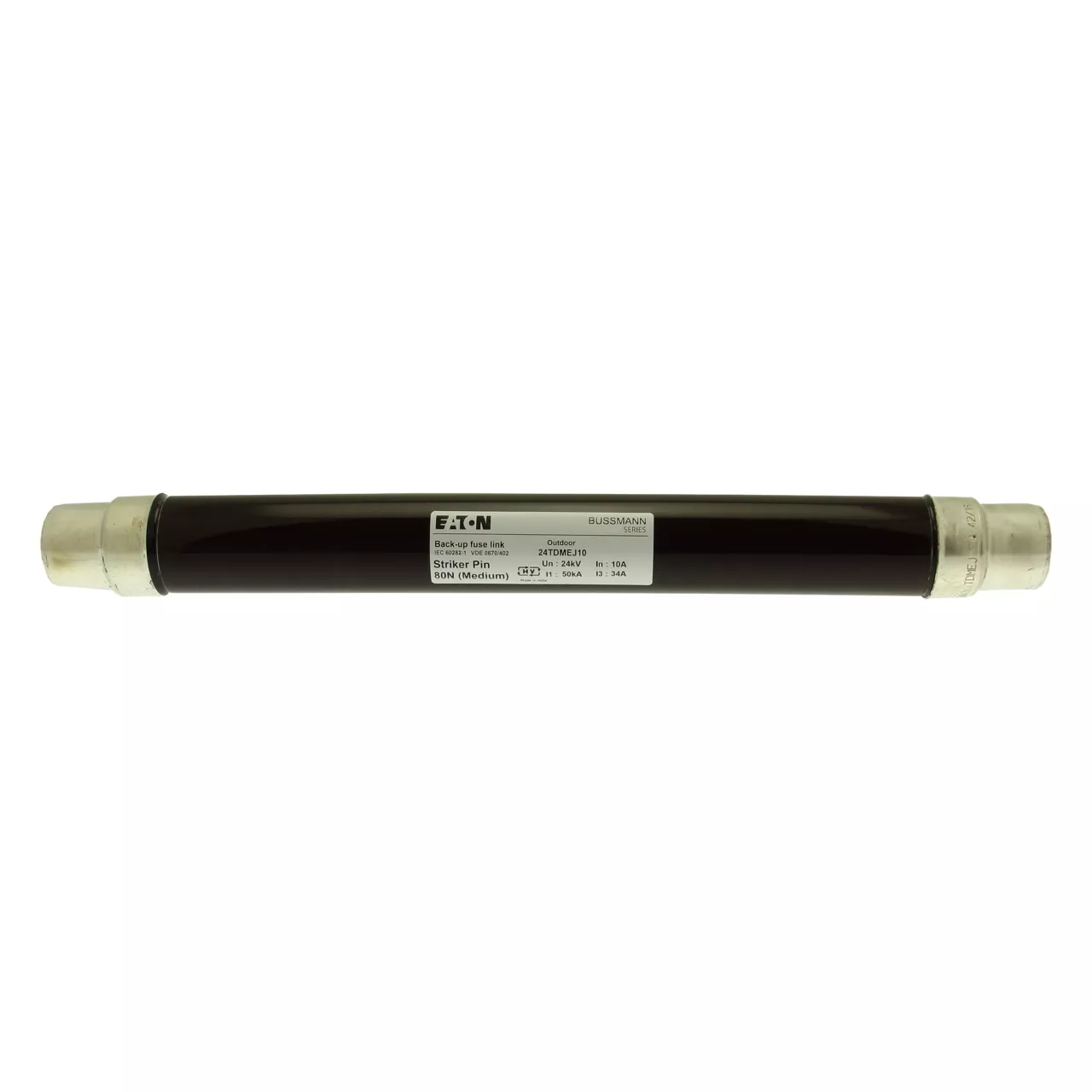 Sicherung, Sicherungseinsatz, Mittelspannung, 10 A, AC 24 kV, 2 Zoll, 51 x 442 mm, Pufferung, DIN, mit Schlagmelder, Transformatorschutz, Einsatz im Innen- oder Außenbereich, DIN 43625, VDE 0670 Teil 4, VDE 0670 Teil 402, IEC 60282-1, Ausschaltvermögen 50 kA
