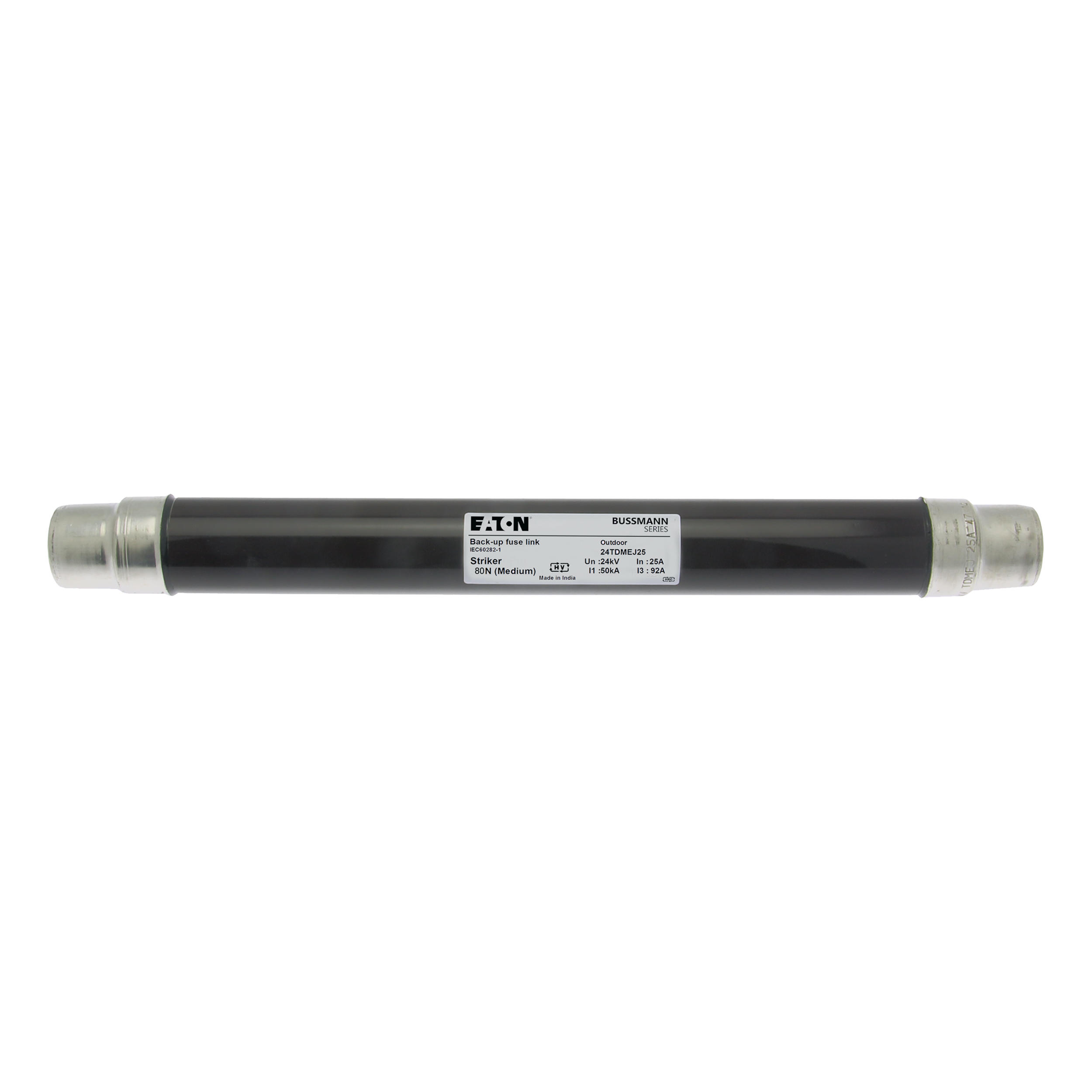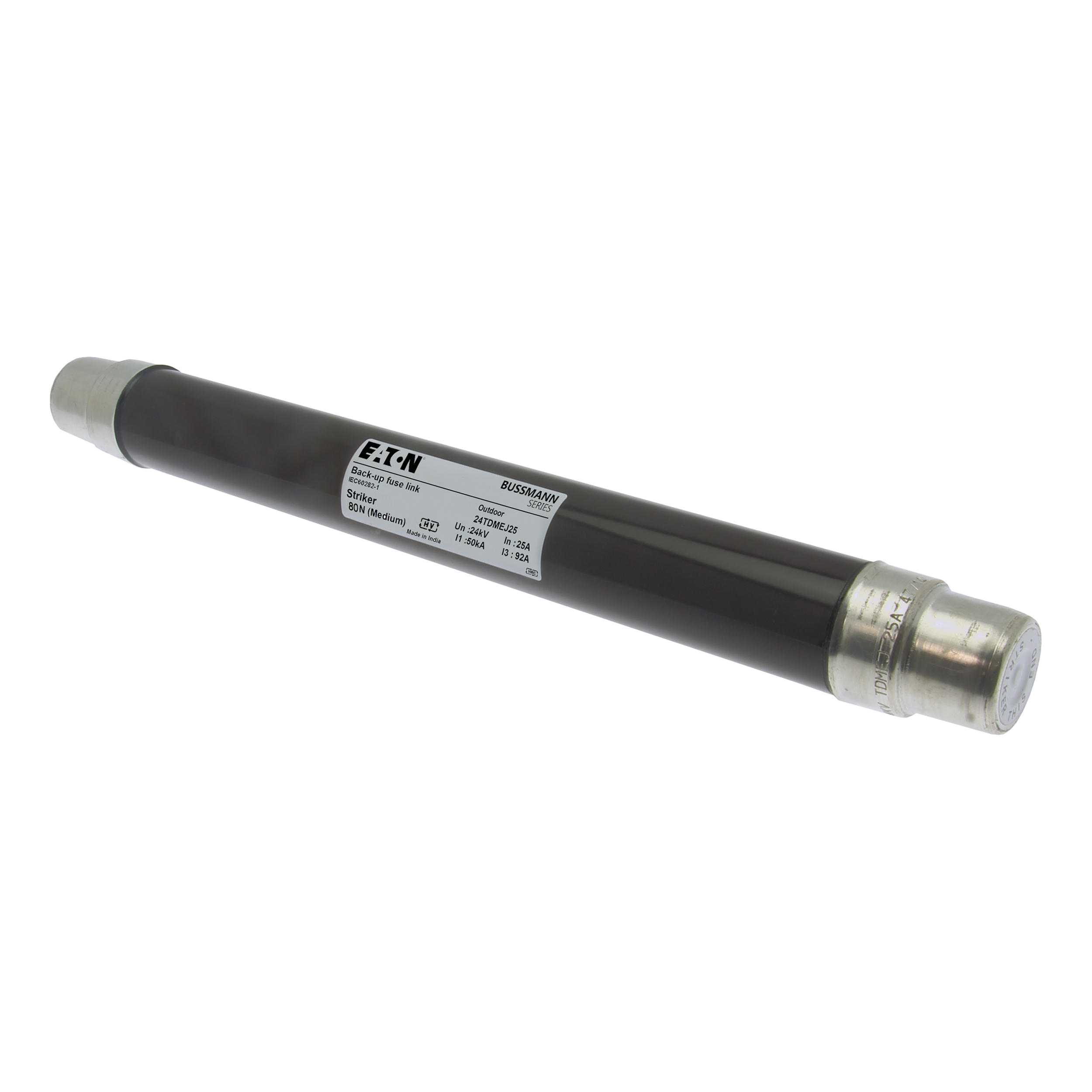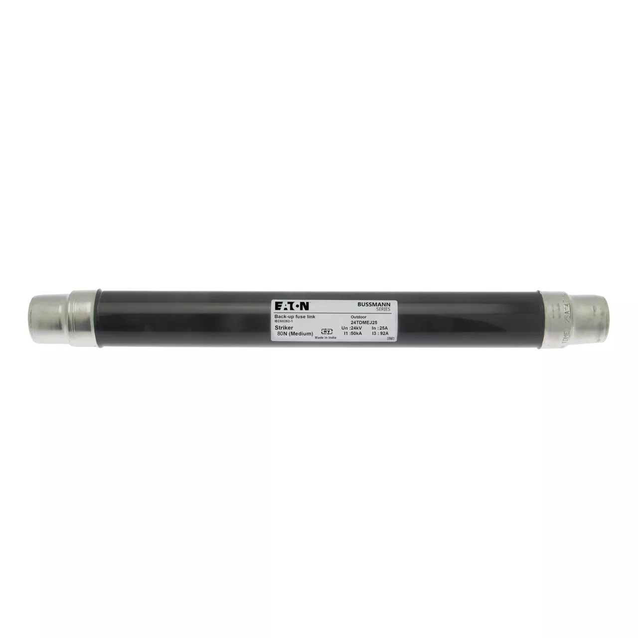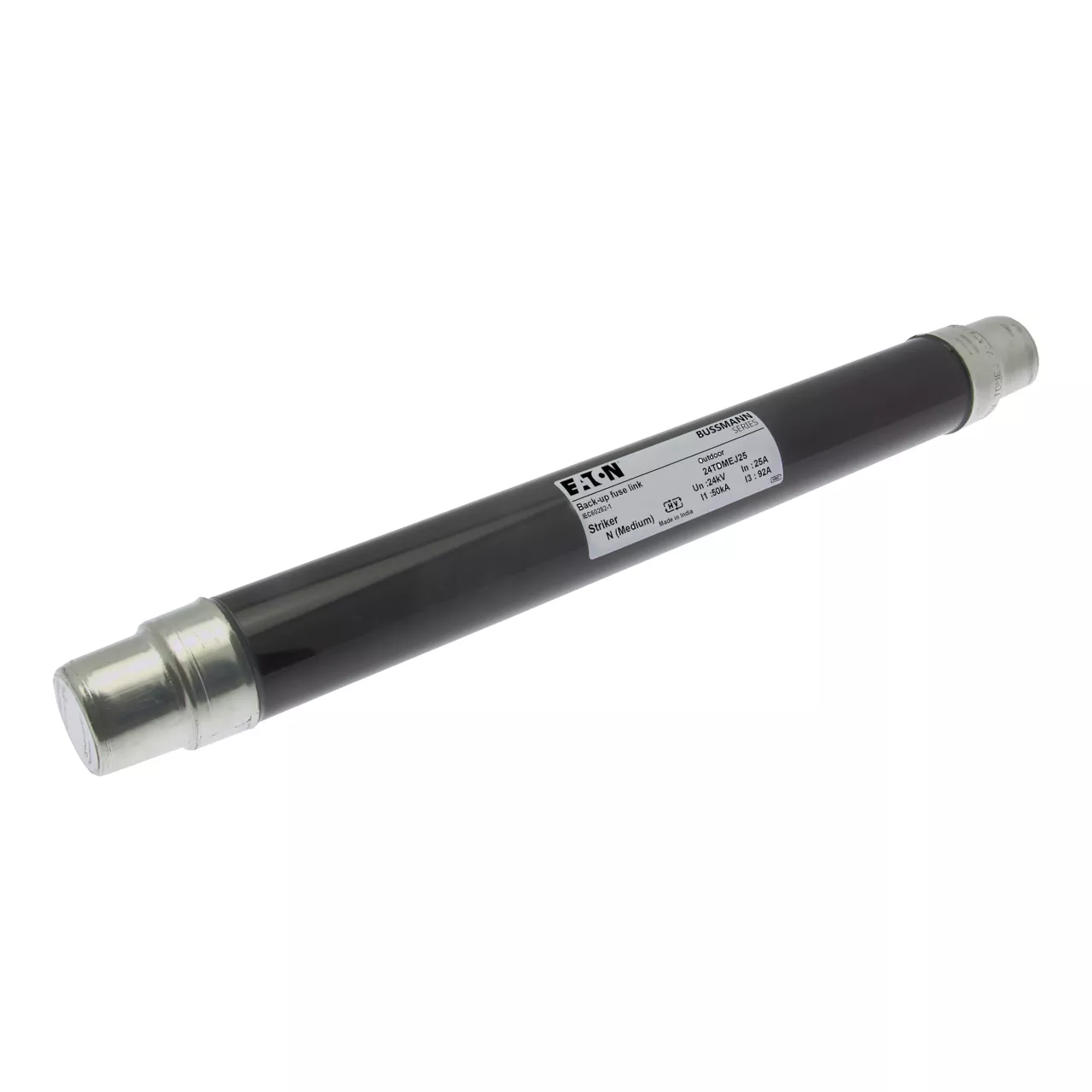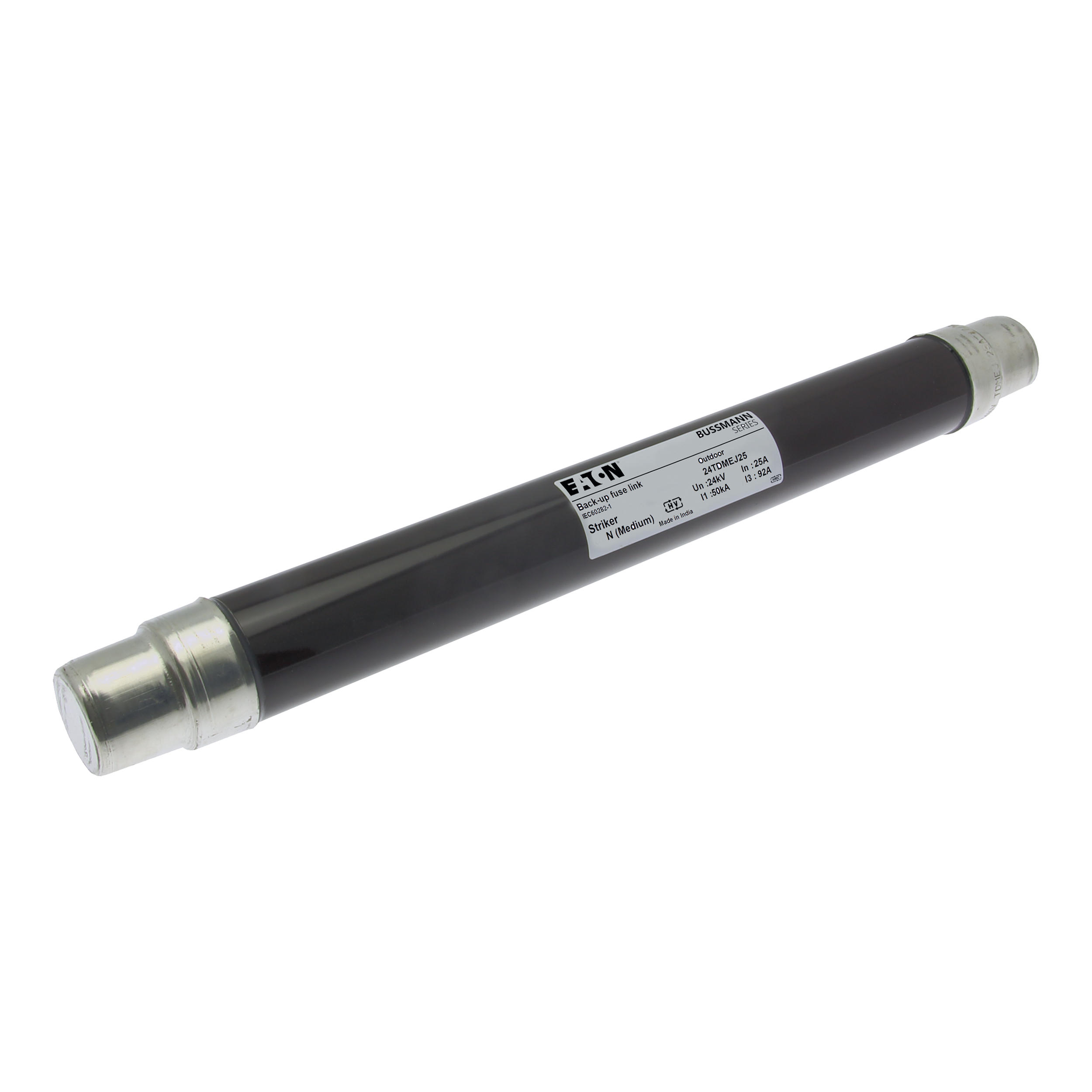 Sicherung, Sicherungseinsatz, Mittelspannung, 25 A, AC 24 kV, 2 Zoll, 51 x 442 mm, Pufferung, DIN, mit Schlagmelder, Transformatorschutz, Einsatz im Innen- oder Außenbereich, DIN 43625, VDE 0670 Teil 4, VDE 0670 Teil 402, IEC 60282-1, Ausschaltvermögen 50 kA