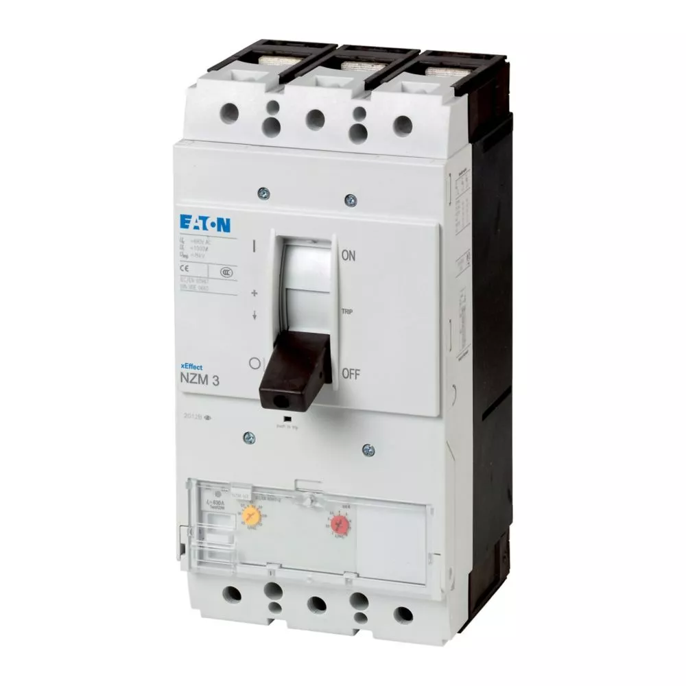 Vermogensautomaat NZM3, 3-polig, Schakelvermogen 400/415 V 50 Hz( Icu ): 150 kA, Nominale bedrijfsstroom = nominale ononderbroken stroom Nominale bedrijfsstroom = nominale ononderbroken stroom (ln = lu): 250 A, Installatietype: Vast, Schroefaansluiting, Standaard/goedkeuring: IEC, Beschermingsfunctie: Installatie- en kabelbeveiliging