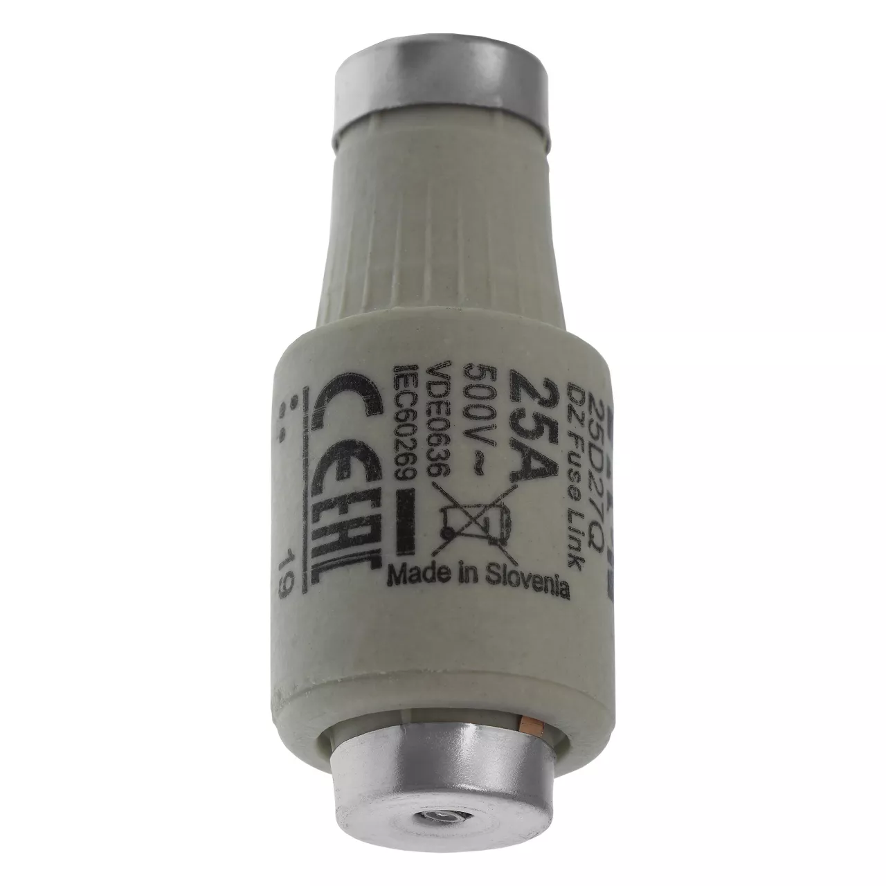 Zekering, zekeringelement, laagspanning, 25 A, AC 500 V, D2, gR, IEC, snel aansprekend, fles, E27, IEC 60269-3, VDE 0636, afschakelvermogen 50 kA