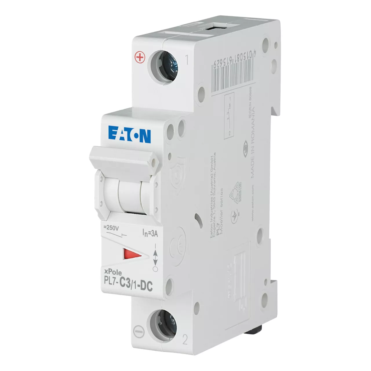Leitungsschutzschalter (MCB), PL7, 1-polig, Auslösecharakteristik: C, Bemessungsstrom Ein: 3 A, Bemessungsschaltvermögen nach IEC/EN 60947-2: 10 kA, Schaltgeräte für DC-Anwendungen
