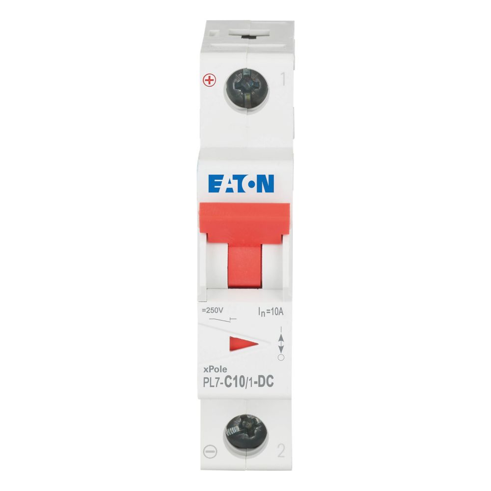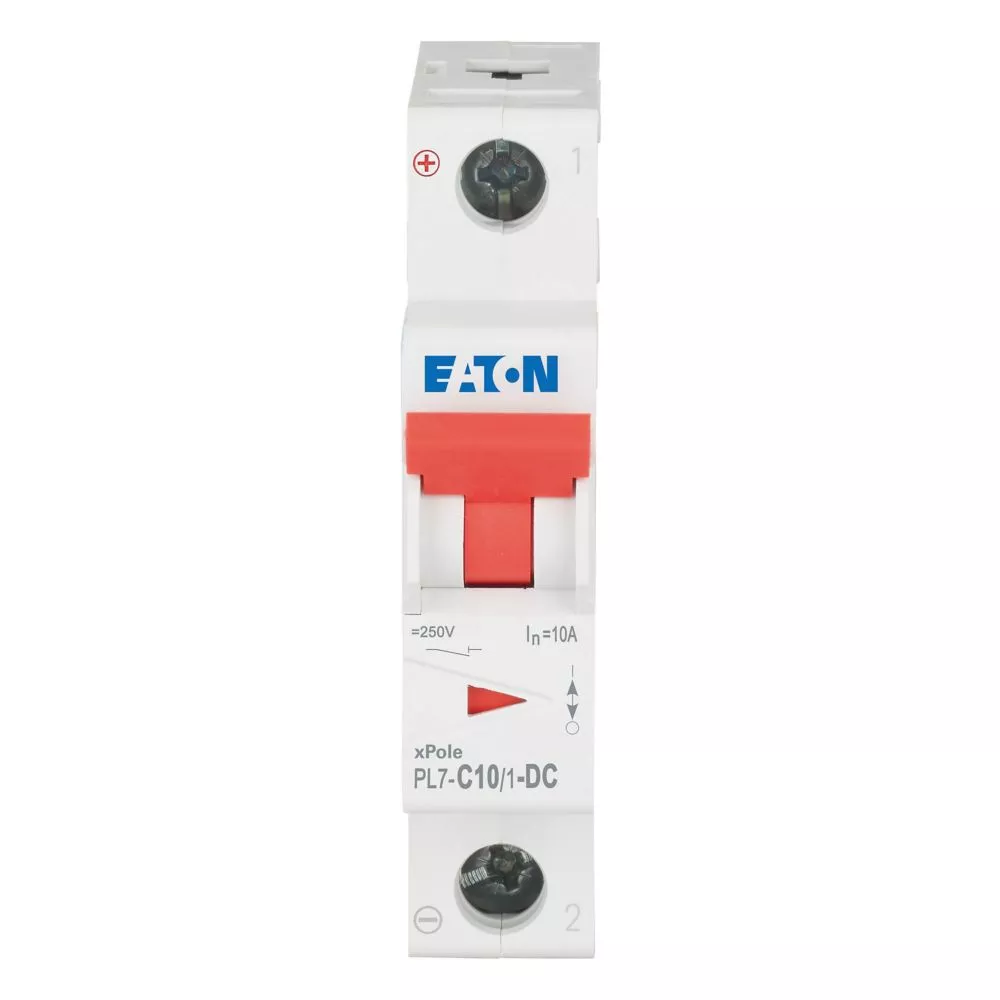 Leitungsschutzschalter (MCB), PL7, 1-polig, Auslösecharakteristik: C, Bemessungsstrom Ein: 10 A, Bemessungsschaltvermögen nach IEC/EN 60947-2: 10 kA, Schaltgeräte für DC-Anwendungen
