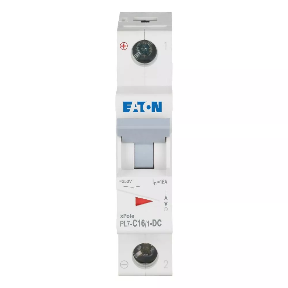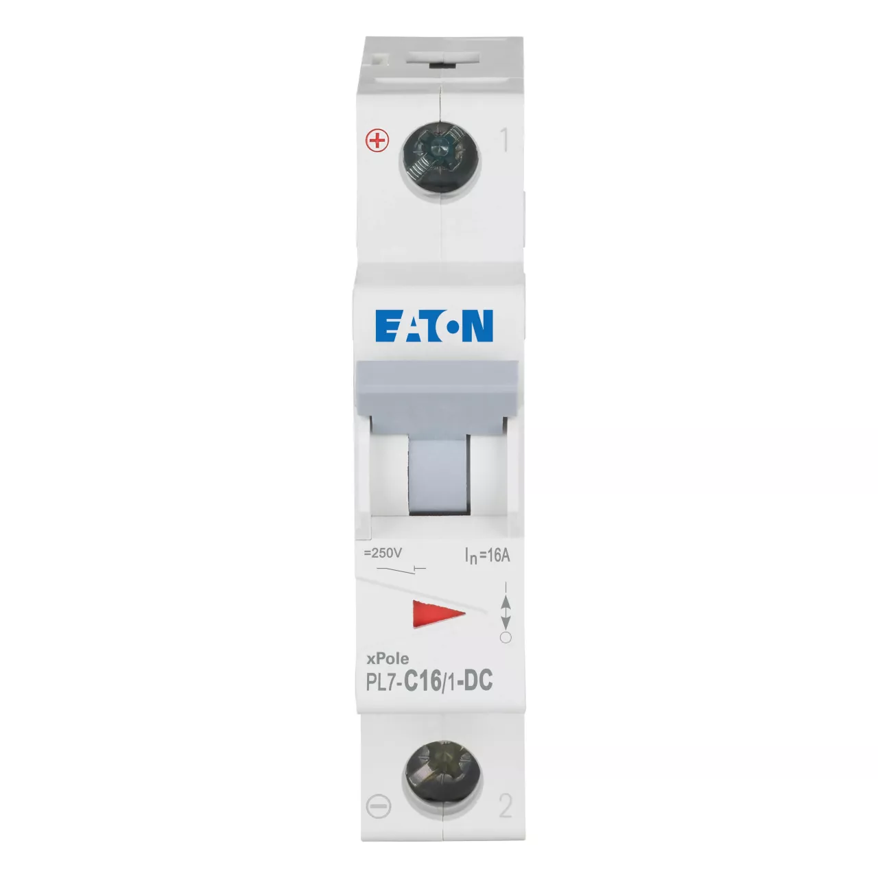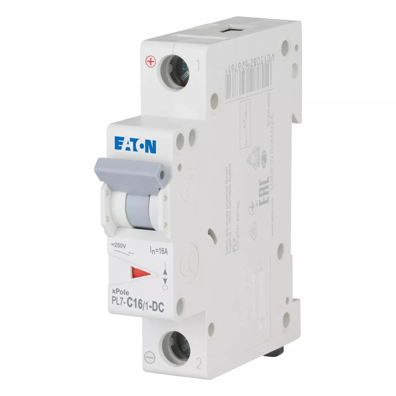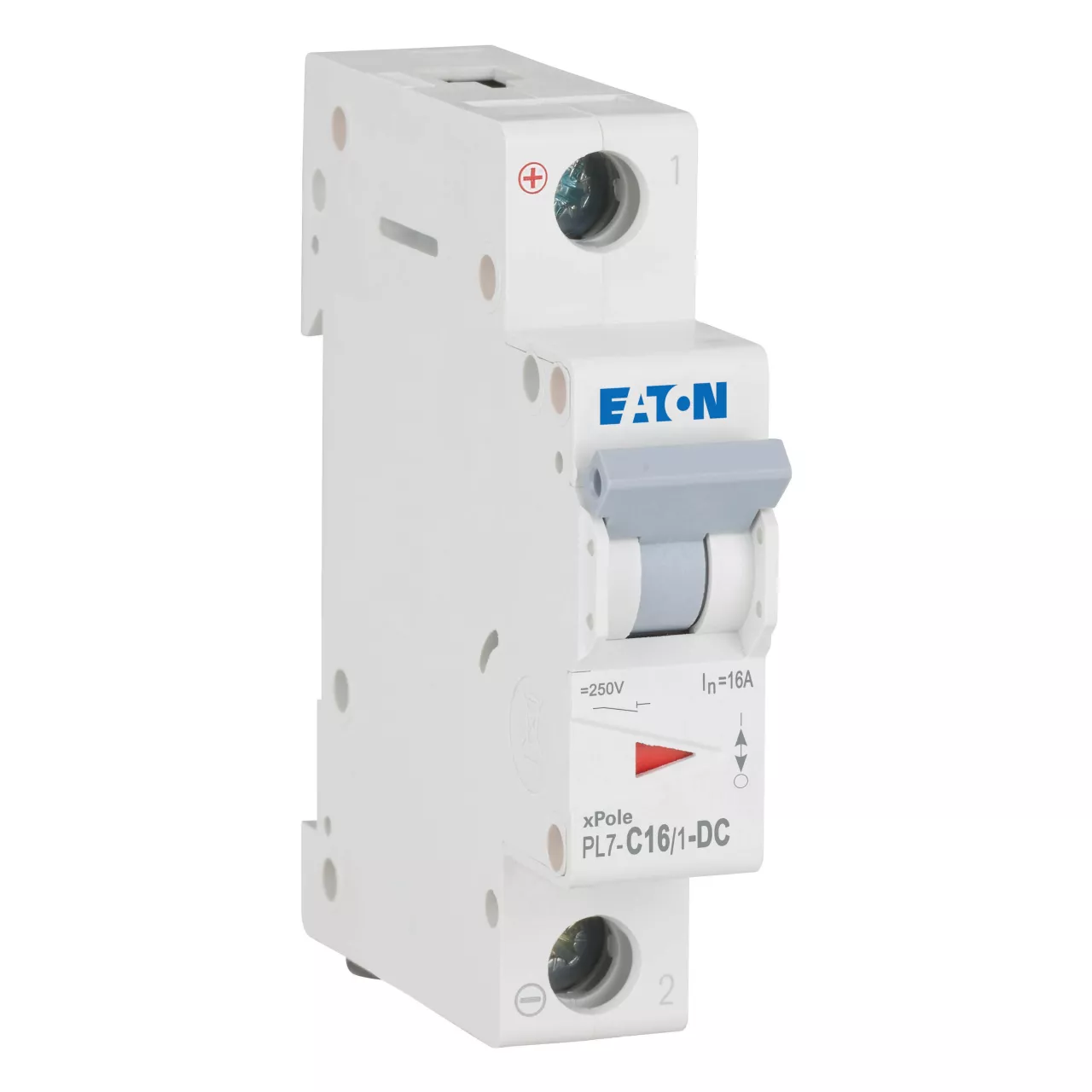 Leitungsschutzschalter (MCB), PL7, 1-polig, Auslösecharakteristik: C, Bemessungsstrom Ein: 16 A, Bemessungsschaltvermögen nach IEC/EN 60947-2: 10 kA, Schaltgeräte für DC-Anwendungen