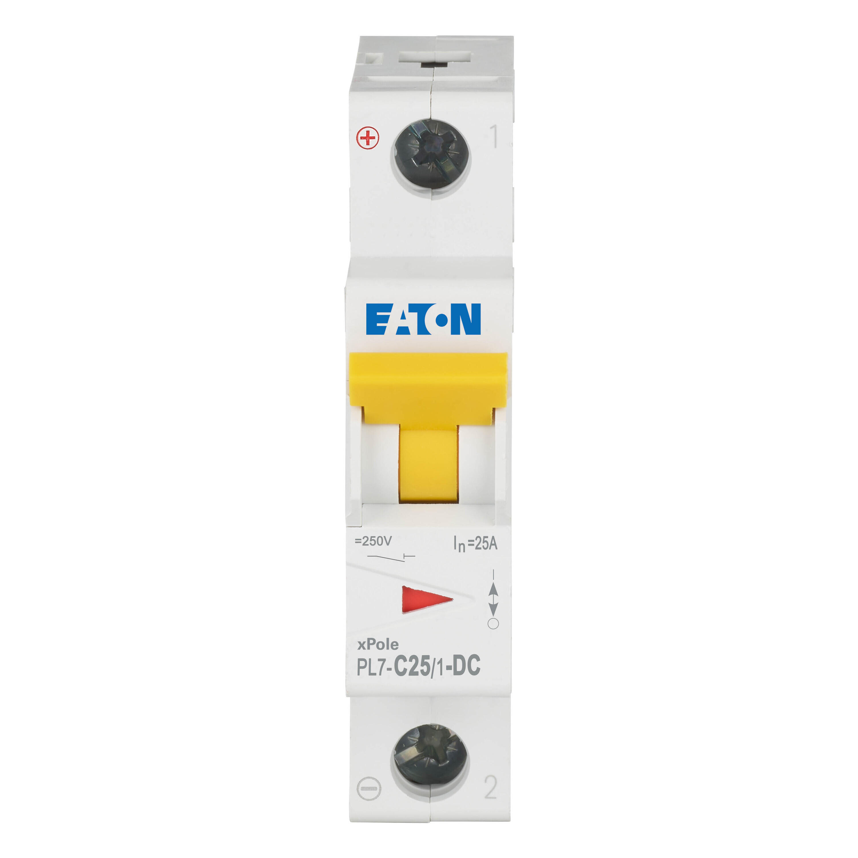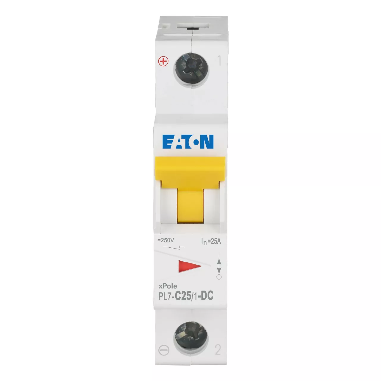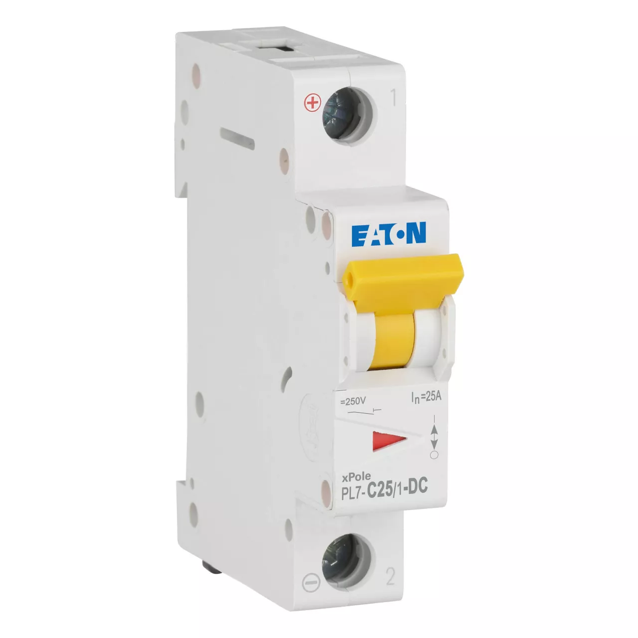 Leitungsschutzschalter (MCB), PL7, 1-polig, Auslösecharakteristik: C, Bemessungsstrom Ein: 25 A, Bemessungsschaltvermögen nach IEC/EN 60947-2: 10 kA, Schaltgeräte für DC-Anwendungen