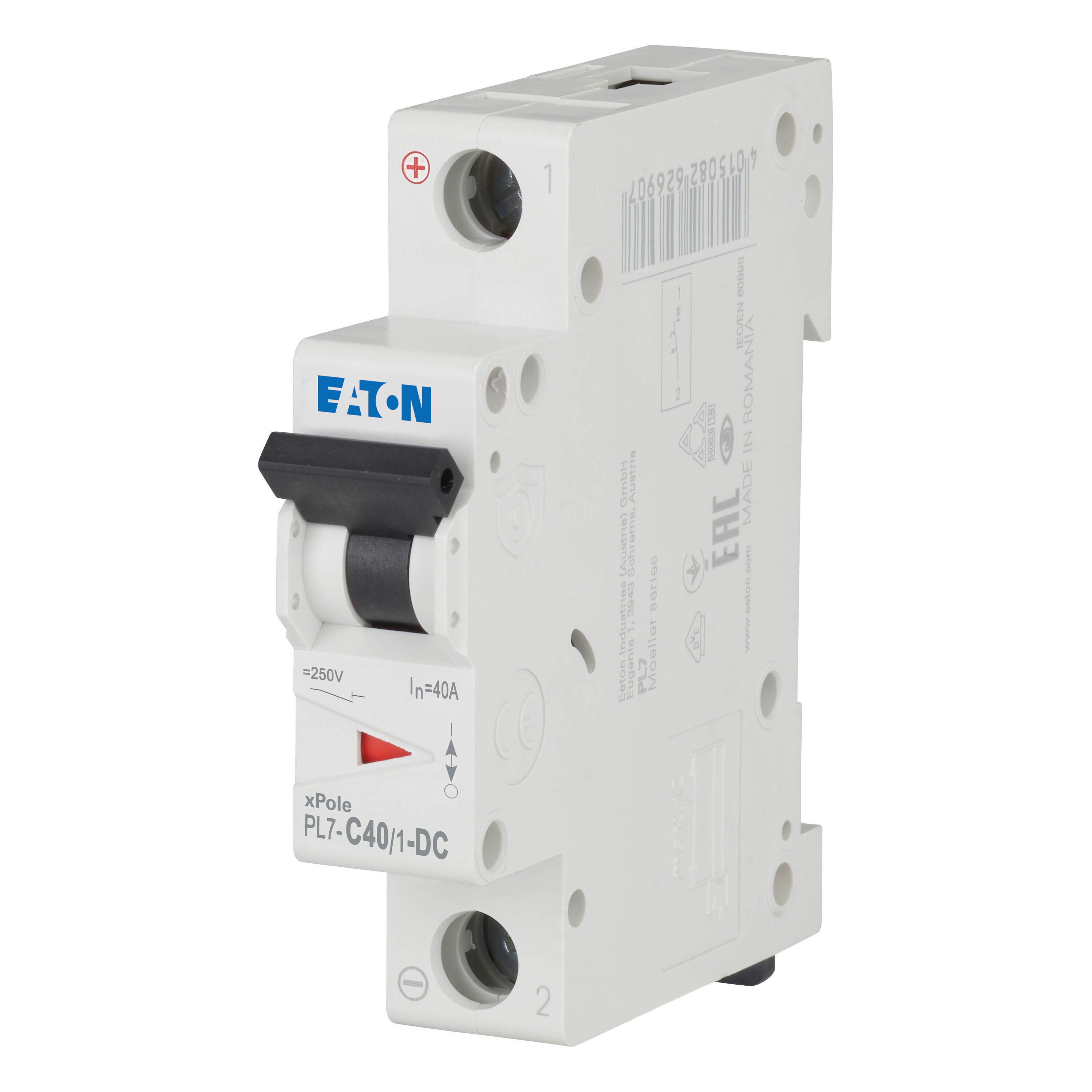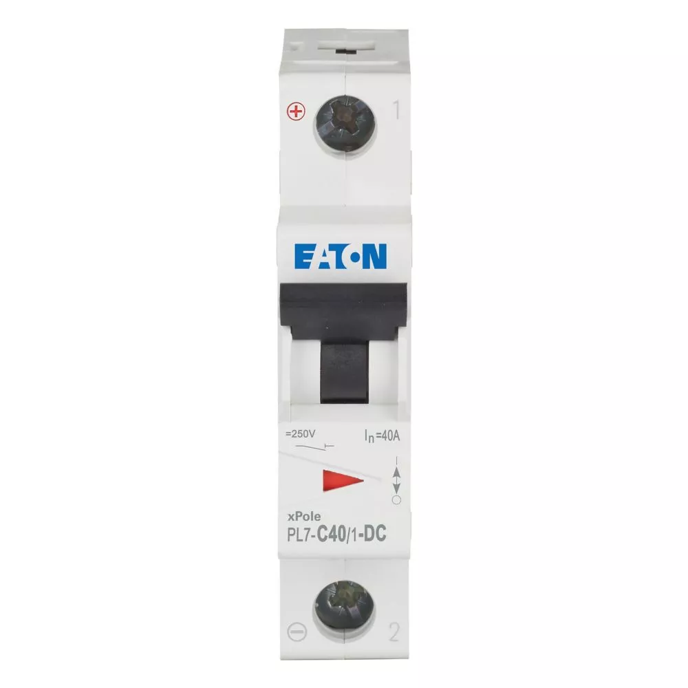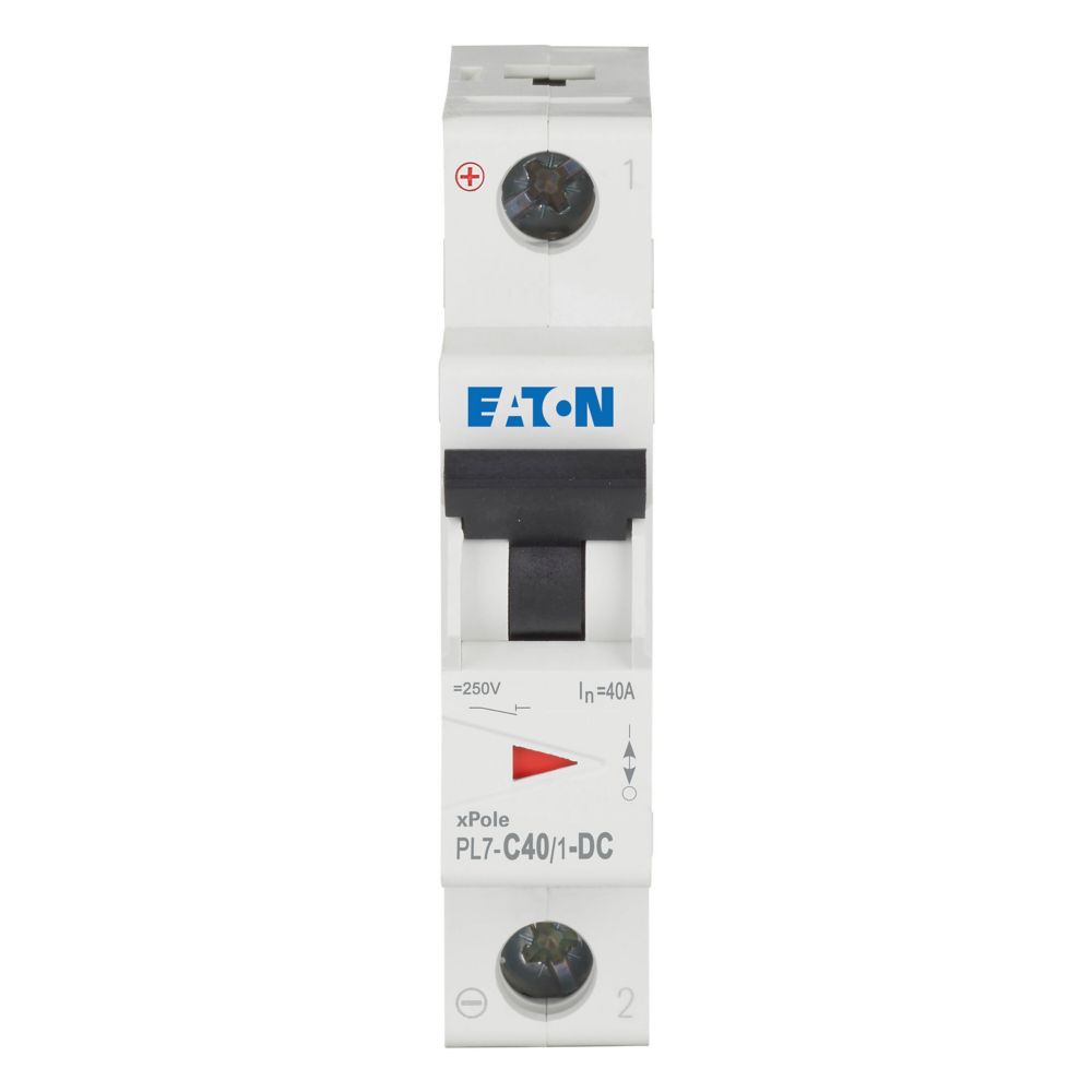 Leitungsschutzschalter (MCB), PL7, 1-polig, Auslösecharakteristik: C, Bemessungsstrom Ein: 40 A, Bemessungsschaltvermögen nach IEC/EN 60947-2: 10 kA, Schaltgeräte für DC-Anwendungen