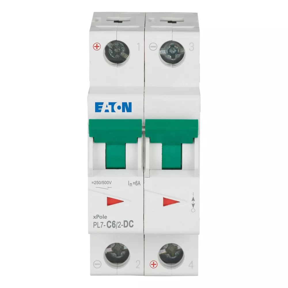 Leitungsschutzschalter (MCB), PL7, 2-polig, Auslösecharakteristik: C, Bemessungsstrom Ein: 6 A, Bemessungsschaltvermögen nach IEC/EN 60947-2: 10 kA, Schaltgeräte für DC-Anwendungen