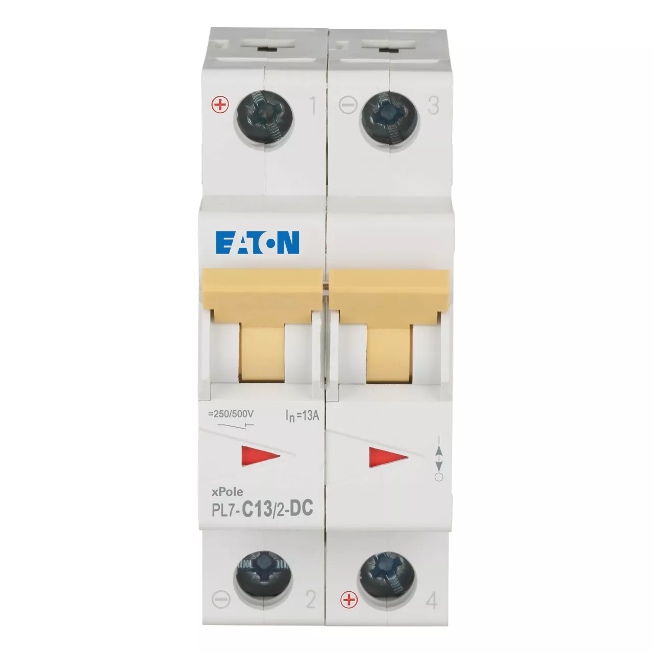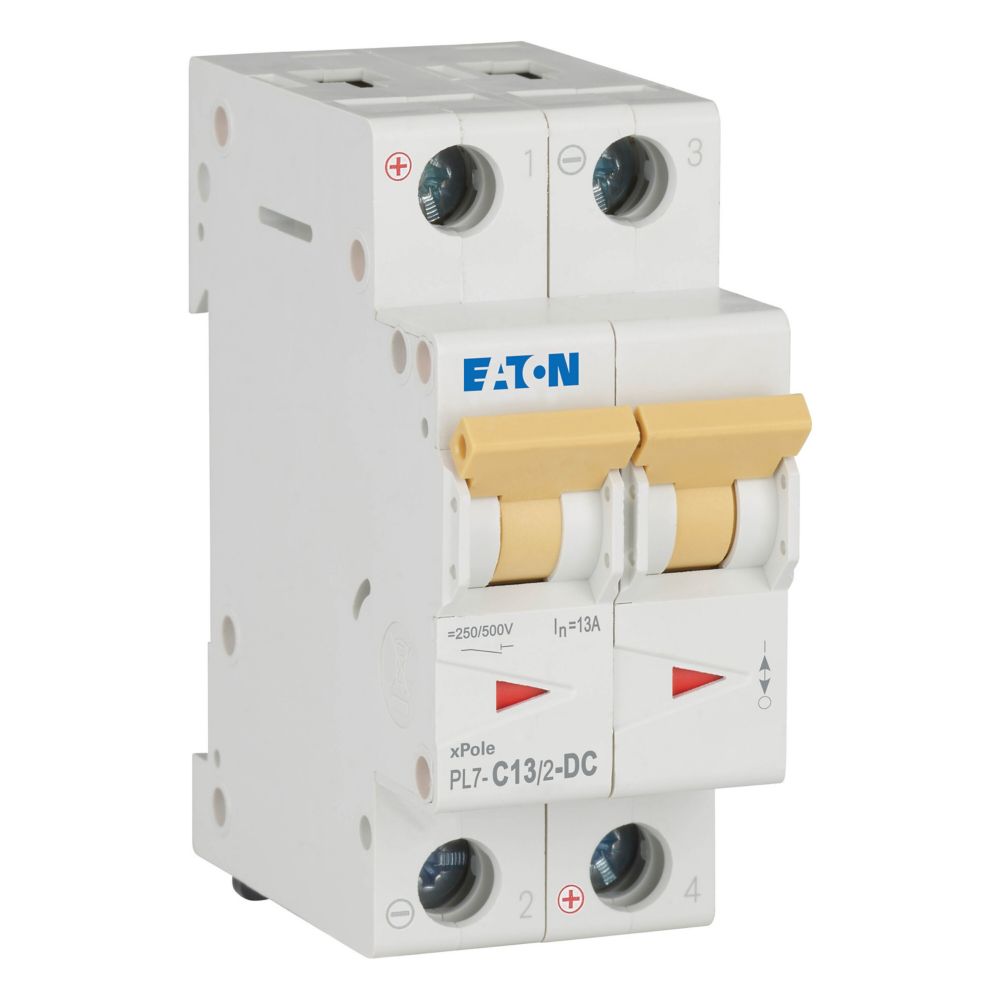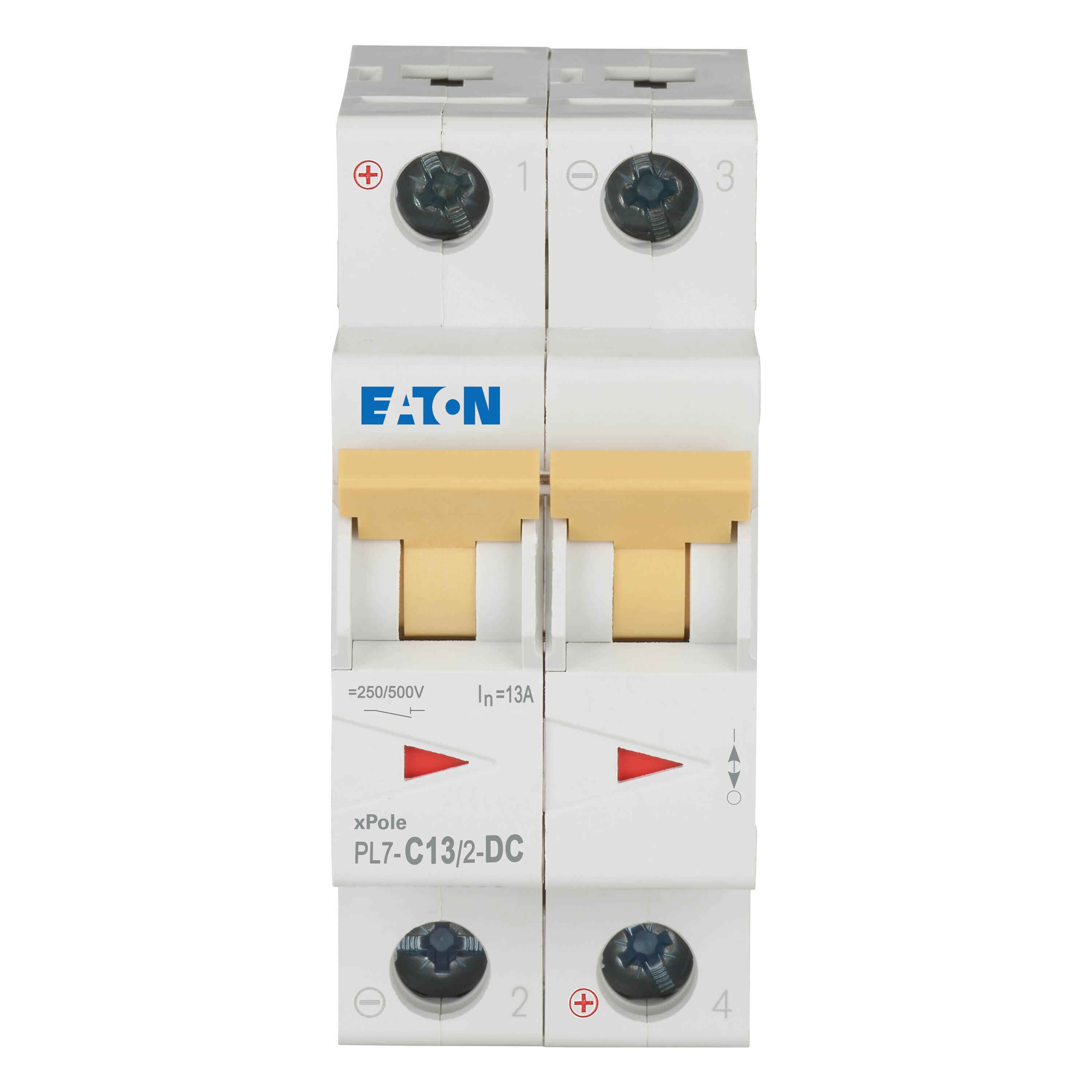 Leitungsschutzschalter (MCB), PL7, 2-polig, Auslösecharakteristik: C, Bemessungsstrom Ein: 13 A, Bemessungsschaltvermögen nach IEC/EN 60947-2: 10 kA, Schaltgeräte für DC-Anwendungen