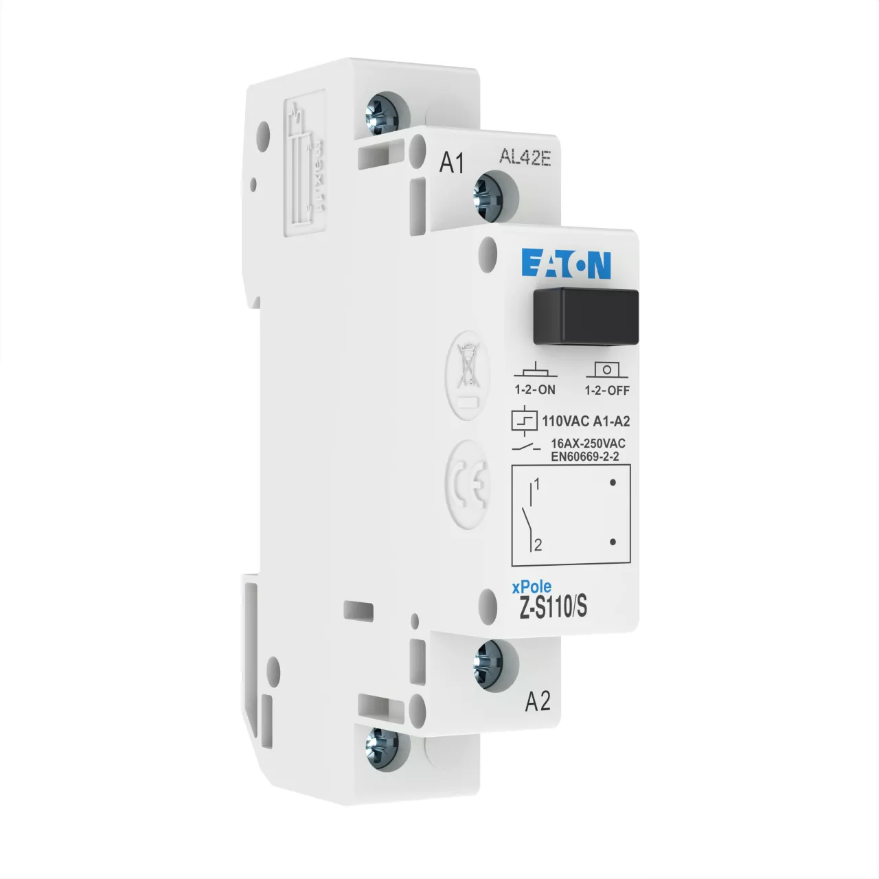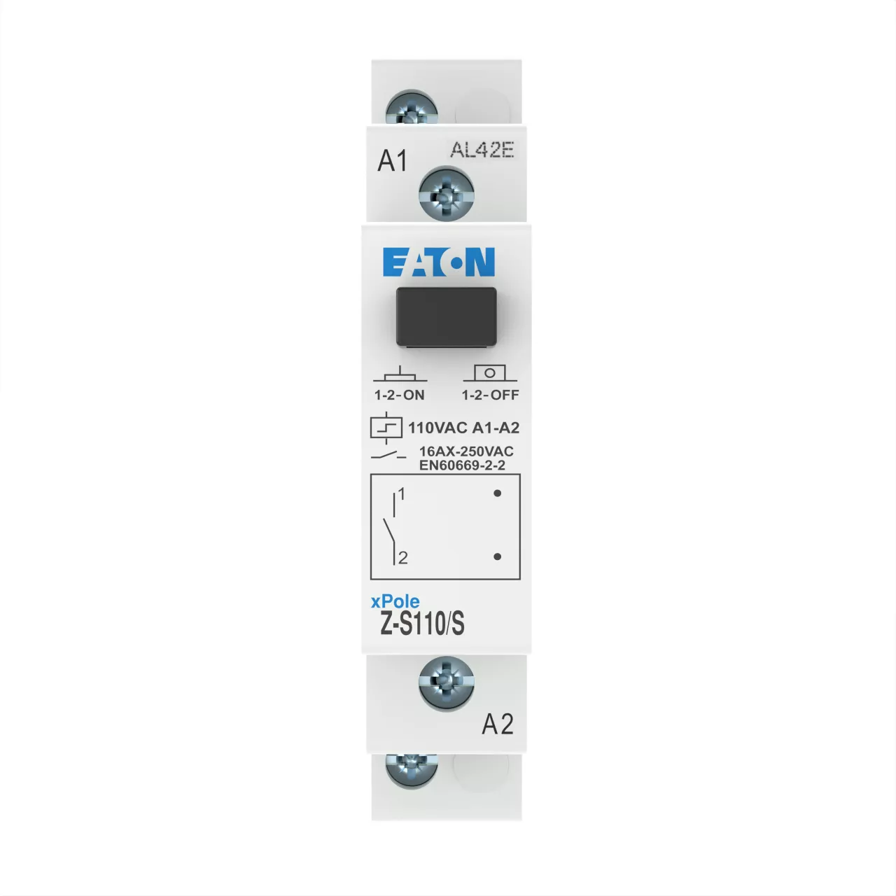 Stromstoßschalter, Steuerspannung 110 V 50 Hz, Funktion: 1 S, Bemessungsbetriebsstrom bei 250 V AC gemäß IEC/EN 60669-2-2: 16 A, Kappenmaß 45 mm, Montagebreite 1 SU (17,5 mm), Hutschienenmontage, Klemmenquerschnitt 0,5 bis 10 mm² eindrähtig und flexibel/0,5 bis 6 mm² flexibel mit Aderendhülse