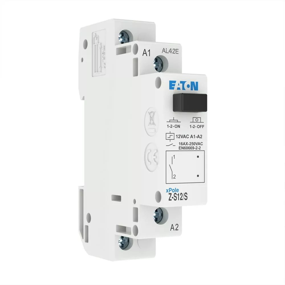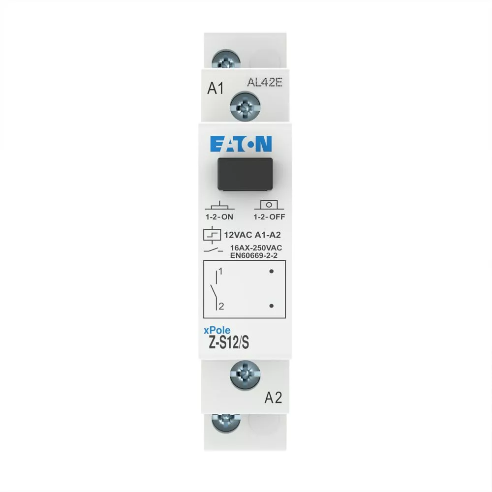 Stromstoßschalter, Steuerspannung 12 V 50 Hz, Funktion: 1 S, Bemessungsbetriebsstrom bei 250 V AC gemäß IEC/EN 60669-2-2: 16 A, Kappenmaß 45 mm, Montagebreite 1 SU (17,5 mm), Hutschienenmontage, Klemmenquerschnitt 0,5 bis 10 mm² eindrähtig und flexibel/0,5 bis 6 mm² flexibel mit Aderendhülse