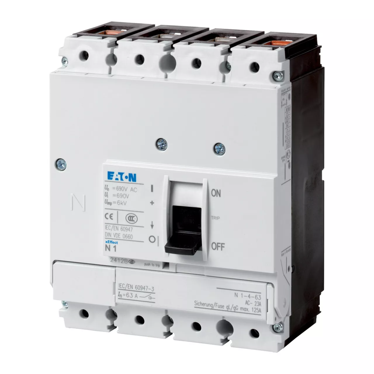 Lastscheider PN..-.. conform de isolatie-eigenschappen, zelfs voor geaarde IT-netwerken. Toebehoren, zoals brugsets, de verbindingsaansluitingen en de draaigrepen van de deurkoppeling maken individuele installatie in de meest uiteenlopende distributiesystemen mogelijk. PN-onderdeelnr. zijn niet geschikt voor afstandsbedieningsfuncties. Opmerkingen: eigenschappen hoofdschakelaar inclusief positieve aandrijving conform IEC/EN 60204 en VDE 0113. Isolatiekenmerken conform IEC/EN 60947-3 en VDE 0660. Afdekkap kabelgoot conform VDE 0160 deel 100.