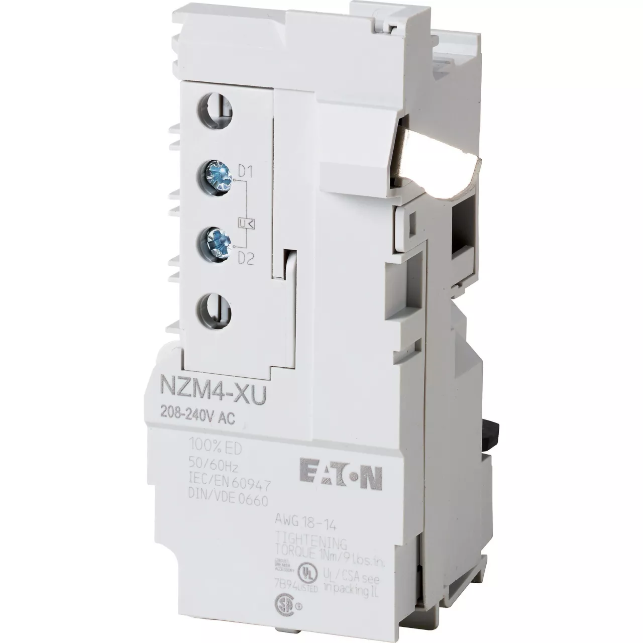 Optionele accessoires voor de vermogensschakelaars uit de serie NZM bieden een uitgebreid assortiment toepassingsopties voor gebruik wereldwijd. De montage is altijd flexibel en eenvoudig dankzij de modulaire functiegroepen. Opmerkingen: onvertraagde uitschakeling van NZM-vermogensschakelaar of N-lastscheider wanneer de stuurspanning daalt tot onder 35-70% US. Te gebruiken bij noodstopapparaten in combinatie met een noodstopknop. Wanneer de onderspanningslosser spanningsloos is, onbedoeld contact met de hoofdcontacten van de schakelaar wordt tijdens inschakelingspogingen op veilige wijze voorkomen
