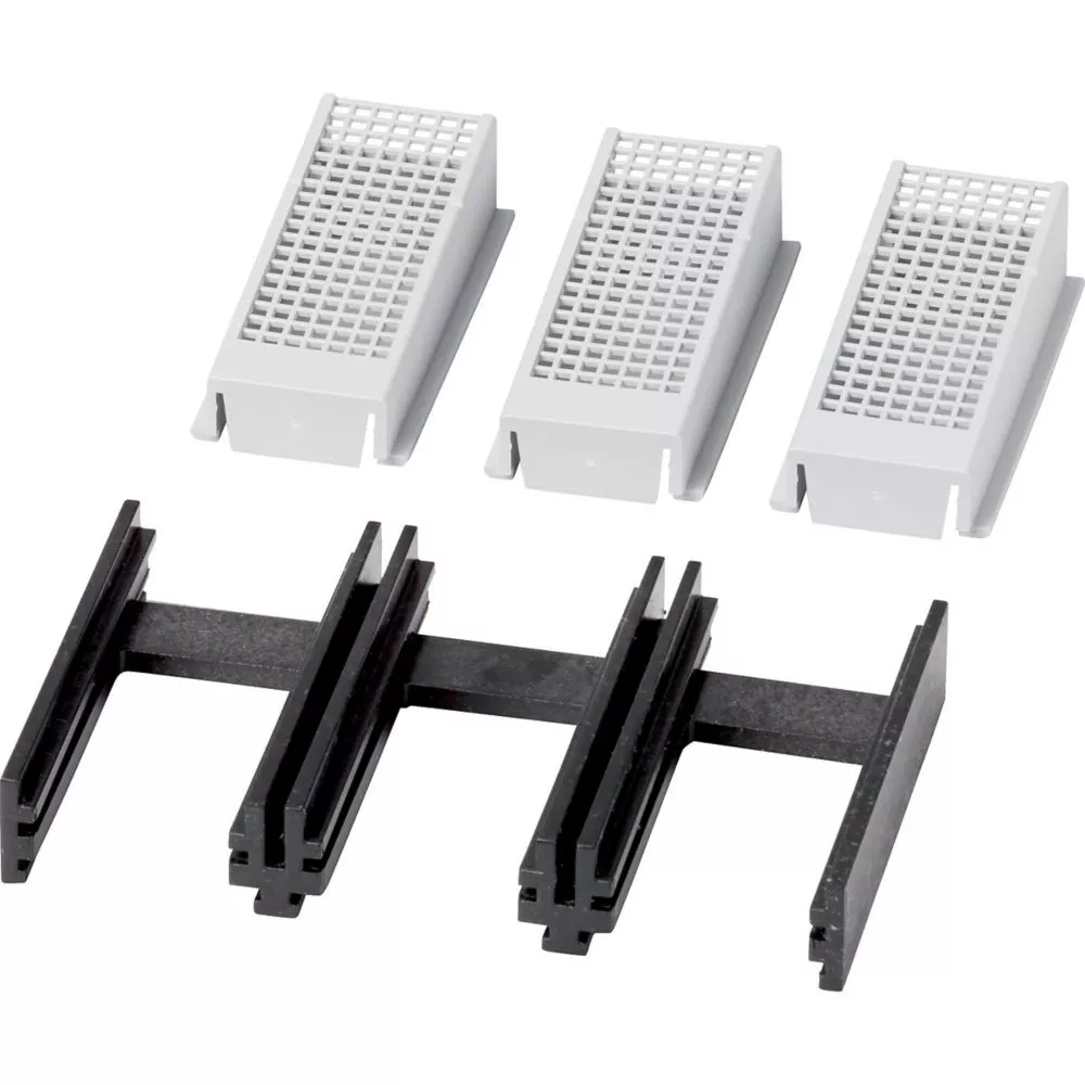 Optionele accessoires voor de vermogensschakelaars uit de serie NZM bieden een uitgebreid assortiment toepassingsopties voor gebruik wereldwijd. De montage is altijd flexibel en eenvoudig dankzij de modulaire functiegroepen. Opmerkingen: onderdeelnr. bevat onderdelen voor een aansluiting aan de boven- of onderkant voor 3- of 4-polige schakelaars. Verbetering van de afdekkap kabelgoot naar IP2X. Bescherming wanneer u in het kabelaansluitgebied reikt bij het aansluiten van kabels in de doosaansluiting. Als er 2 geleiders zijn, De maximale dwarsdoorsnede is 25 mm2 of AWG4. Kan niet worden gecombineerd met NZM-XSTK-aansluiting voor besturingscircuit. Kan gebruikt worden voor: NZM2, PN2, N(S)2