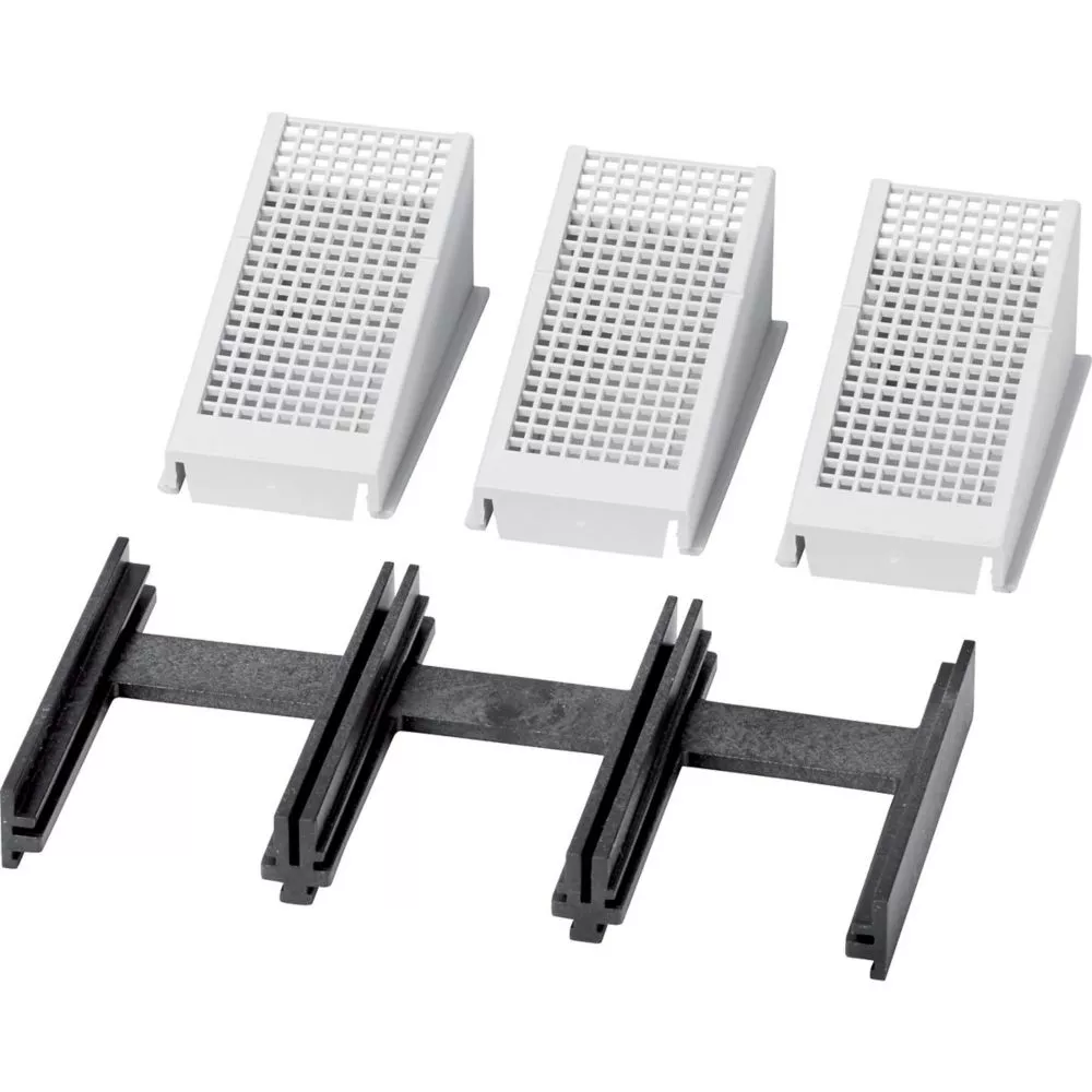 Optionele accessoires voor de vermogensschakelaars uit de serie NZM bieden een uitgebreid assortiment toepassingsopties voor gebruik wereldwijd. De montage is altijd flexibel en eenvoudig dankzij de modulaire functiegroepen. Opmerkingen: onderdeelnr. bevat onderdelen voor een aansluiting aan de boven- of onderkant voor 3- of 4-polige schakelaars. Verbetering van de afdekkap kabelgoot naar IP2X. Bescherming wanneer u met uw hand het kabelaansluitgebied ingaat bij het aansluiten van kabels in de doosaansluiting. Met 2 geleiders, maximale doorsnede 70 mm. Kan niet worden gecombineerd met NZM-XSTK-besturingscircuitaansluiting. Kan gebruikt worden voor: NZM3(-4), PN3(-4), N3(-4)