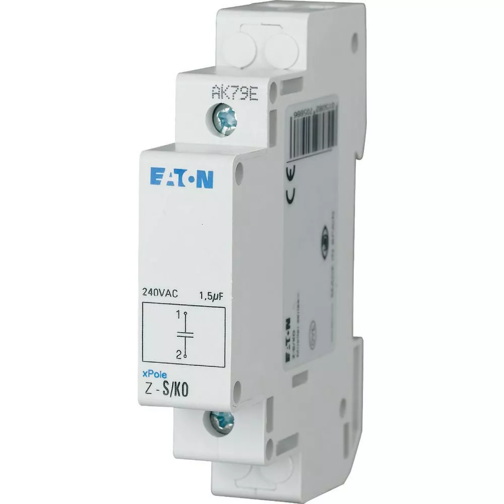Kondensatorblock (Druckregler), 1,5µF, 240V AC, Kappenmaß 45 mm, Montagebreite 1 SU (17,5 mm), Hutschienenmontage