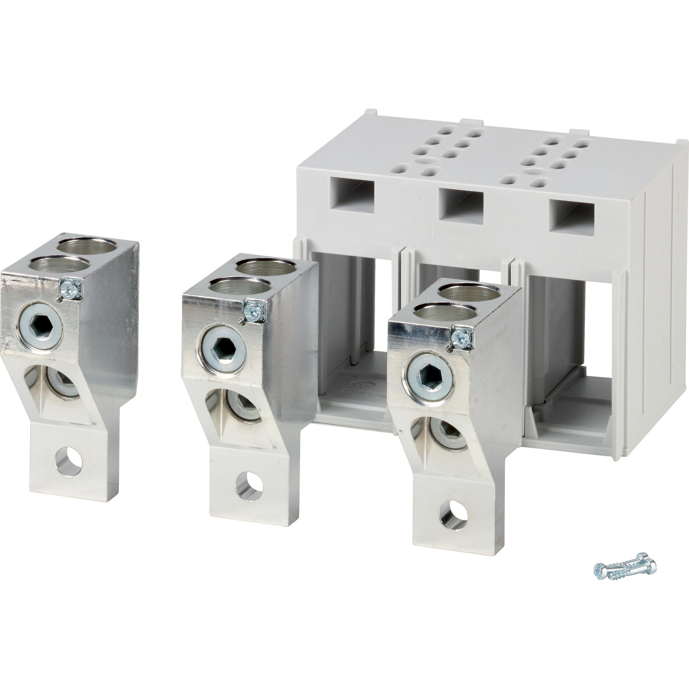 Optionele accessoires voor de vermogensschakelaars uit de serie NZM bieden een uitgebreid assortiment toepassingsopties voor gebruik wereldwijd. De montage is altijd flexibel en eenvoudig dankzij de modulaire functiegroepen. Opmerkingen: onderdeelnr. bevat onderdelen voor een aansluiting aan de boven- of onderkant voor 3- of 4-polige schakelaars. Een standaard met besturingscircuitaansluiting voor 1x0,75-2,5 mm² (18-14 AWG) of 2x0,75-1,5 mm² (18-16 AWG) koperen geleiders. Gebruik buiten de schakelaarbehuizing verbindingsstukken met flexibele en zeer flexibele geleiders. Max. afgebeelde dwarsdoorsnede kan alleen worden aangesloten als deze flexibel is en zonder verbindingsstukken