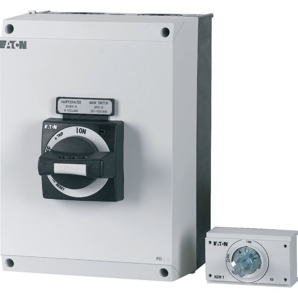 Isolierstoffgehäuse Ci, Schutzart IP65, HxBxT=280x200x160mm, für NZM Baugröße 1, Schutzklasse 2, schlagfestes Polycarbonat, Schalter-Türkupplungsdrehgriff in Schwarz inklusive, Lochplatte für Schalter und optionale PE/N-Klemmen, Gehäusedeckel vorbereitet für Drehgriff, undurchsichtiger Deckel, Wandbefestigungswinkel, inklusive Kabeleinführungsflansche oben und unten.